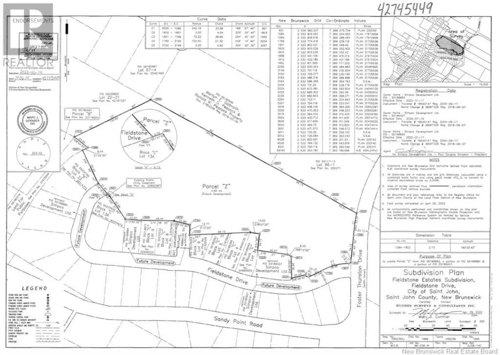 Foster Thurston Drive to Fieldstone Drive, or University Avenue to Sandy Point Road to Fieldstone Drive. An exceptional investment opportunity in one of Saint John's most desirable and prestigious neighbourhoods Fieldstone Estates in Millidgeville. This 12.1-acre parcel of residential development land is ideally positioned within an established, high-end community, just minutes from the Saint John Regional Hospital, University of New Brunswick Saint John, Rockwood Park Golf Course, and the Royal Kennebecasis Yacht Club. With several breathtaking views of the Kennebecasis River, this site offers both scenic appeal and strong market potential. An approved subdivision plan is already on file with the City, outlining a potential for 29 building lots. The property is zoned RL, allowing for a variety of residential development options including low-density multi-unit configurations pending municipal approvals. The relatively flat terrain minimizes cut and fill, and with the services already extended to the property line, this development can be started quickly. Opportunities like this are rare in Saint John, let along in highly sought after Millidgeville. This property delivers location, scale, and upside in one of Saint Johns most sought-after markets. For more details, plans, brochure, and due diligence materials, contact today. (id:27476)