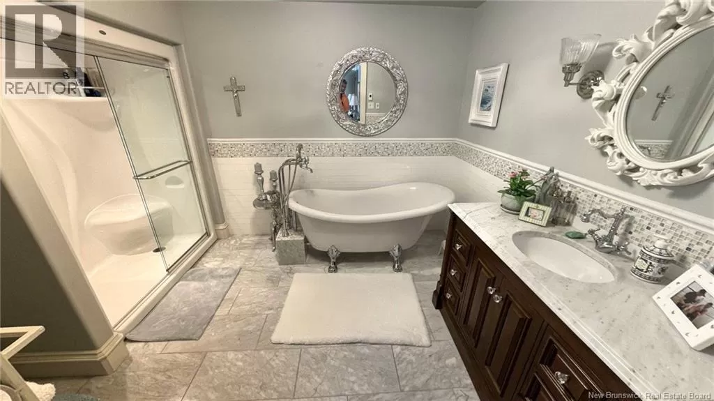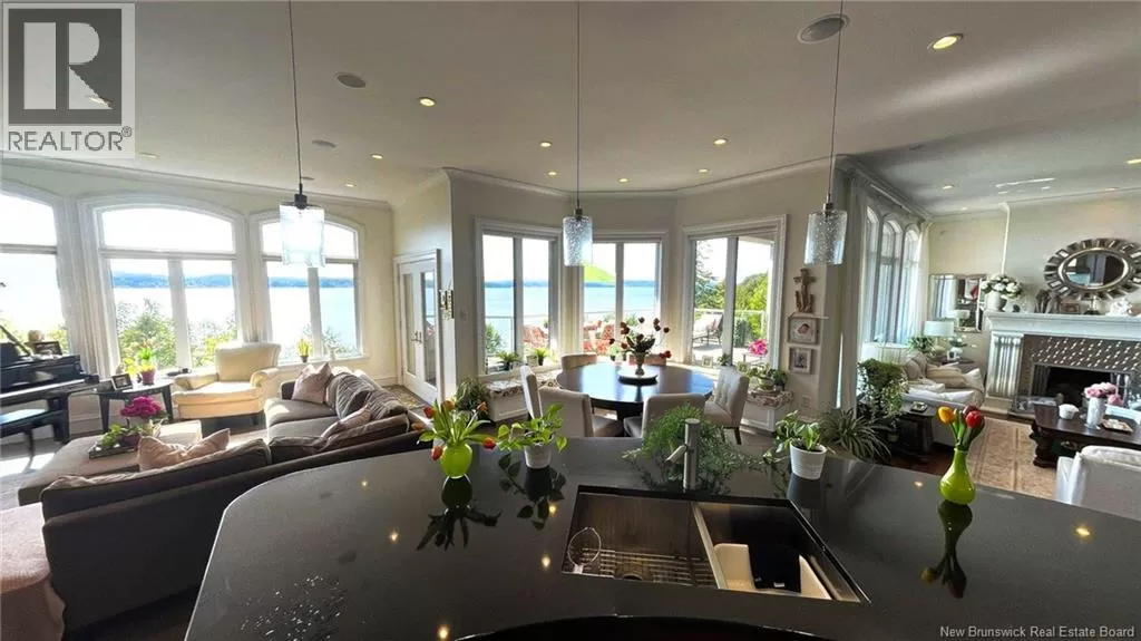 Somerset St and Boars Head Rd to Anchorage Ave. This stunning 4-bedroom plus office, 3-bath waterfront home captures the essence of luxury living with absolutely breathtaking views from every angle. With private stairs leading directly to the beach, you can fully immerse yourself in the beauty of the water just steps from your door. The spacious 3-car garage not only features epoxy floors and an EV hookup, but also includes a dedicated garden center with sinkperfect for those who love both elegance and function. The fully fenced grounds are enhanced with a sprinkler system and wiring for a robotic mower, ensuring effortless outdoor living. Inside, both levels are finished to perfection with complete kitchens, high-end appliances, fireplaces for cozy evenings, an integrated sound system, and expansive decks designed to showcase the remarkable views. Heat pumps provide year-round comfort, making every season enjoyable. Ideally located near the Regional Hospital, UNBSJ, and all amenities, this home is a rare opportunity to embrace luxury, comfort, and the magic of waterfront living. (id:27476)