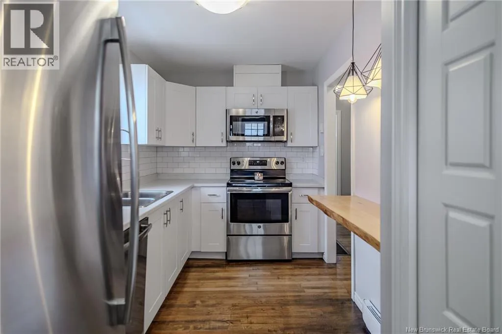 Main Street to Lansdowne. Welcome to 184 Lansdowne Avenue! This nicely kept 1.5 storey home is located conveniently in Saint John's North end offering you easy access to nearby amenities, UNBSJ, the Saint John Regional Hospital and Uptown Saint John. On the main level you will find a spacious living area with a electric fireplace insert, and is connected to the dining room. The main level also includes your bright functional kitchen, full bathroom and laundry room which could also be used as a back entry way. Heading upstairs you will find two bedrooms with the primary bedroom having two large closets and unique ceilings in both bedrooms. In the backyard have your private patio to enjoy those warm days and storage shed as well. Whether you're looing for your first home, to downsize or invest in your first property, this home property is a great option with a comfortable living setup. Reach out today with any questions or to book your private viewing. (id:27476)