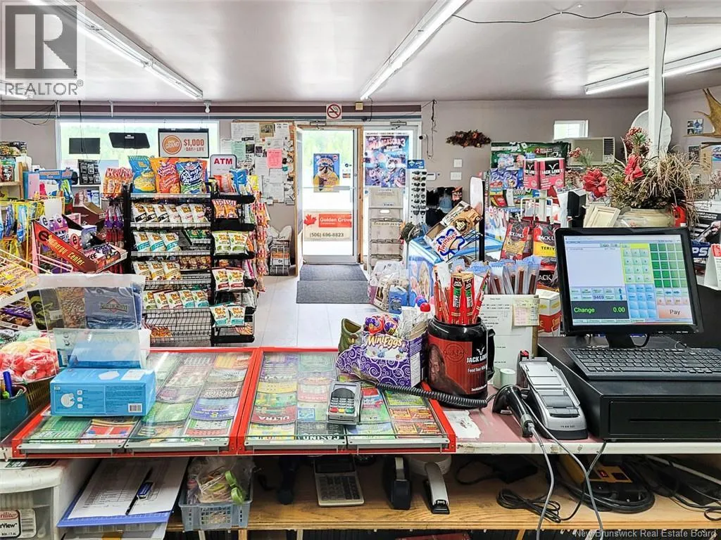 From McGill Rd, turn to Golden Grove Rd Presenting Golden Grove Convenience Store, a rare 9.36-acre waterfront property overlooking Dolan Lake, offering an exceptional opportunity to own both a well-established business and a renovated two-story residence with a garage. Ideally located along a public road with great visibility, this turnkey investment features a thriving convenience store and a beautifully updated home. The residence underwent major renovations in 2013, including new laminate flooring, kitchen cabinets, windows, water heater, bath fixtures, doors, lighting, ramps, and fresh paint. Additional upgrades include a new roof, POS and security systems, and sump pump (2017), LED store lighting (2022), and a professionally built deck (2024). The attached home offers two bedrooms, one bathroom, a living room, kitchen, family room, laundry area, and landscaped yards with apple, lilac, maple, and cedar trees. With over 9 acres of scenic land, this property provides endless possibilities for expansion or additional rental income. A perfect opportunity for investors or owner-operators seeking a lifestyle and business combined in one exceptional location. Inventory costs are additional and will be calculated before the closing day. (id:27476)