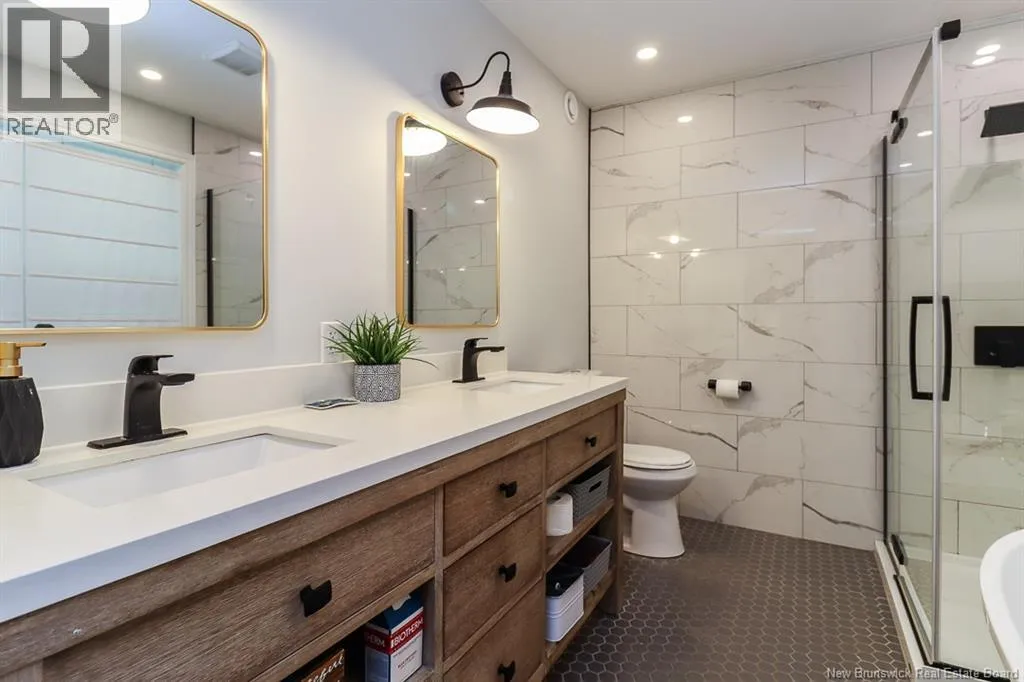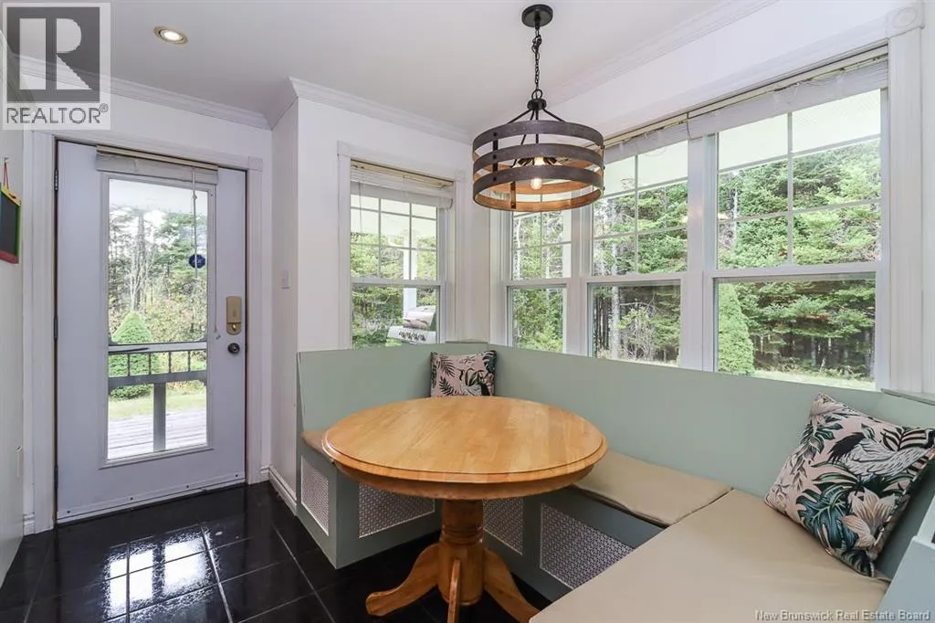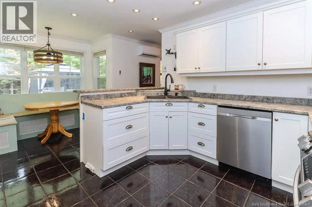 Loch Lomond Rd; left onto Foriere Drive; right onto Maria Cres. Welcome to your own private retreat on 1.5 acres in one of Saint John Easts desirable areas. This beautifully maintained family home offers the perfect blend of comfort, style, and space ideal for modern living. Step inside and be greeted by a bright, open-concept main floor, designed for easy one-level living. The inviting living room features a wood stove, creating a warm, cozy atmosphere. A gorgeous open dining area with built-ins and an accent wall flows seamlessly into the stylish kitchen, complete with a charming banquette perfect for casual meals or morning coffee. The home offers 3 spacious bedrooms, including a large primary suite with a recently renovated dream ensuite. With 3 full bathrooms, theres plenty of space for family and guests. Downstairs, an oversized rec room provides the perfect spot for gatherings, a media room, or a kids hangout. Year-round comfort is ensured with three heat pumps. Outside, youll fall in love with the wrap-around verandah, ideal for relaxing and enjoying the surrounding privacy. A mudroom/laundry area connects to the attached double-car garage, while a single detached garage and garden shed/bunkhouse/art studio offer endless possibilities for hobbies or extra storage. This is a rare opportunity to own a private, beautifully designed property close to city conveniences yet with a serene, country feel. (id:27476)