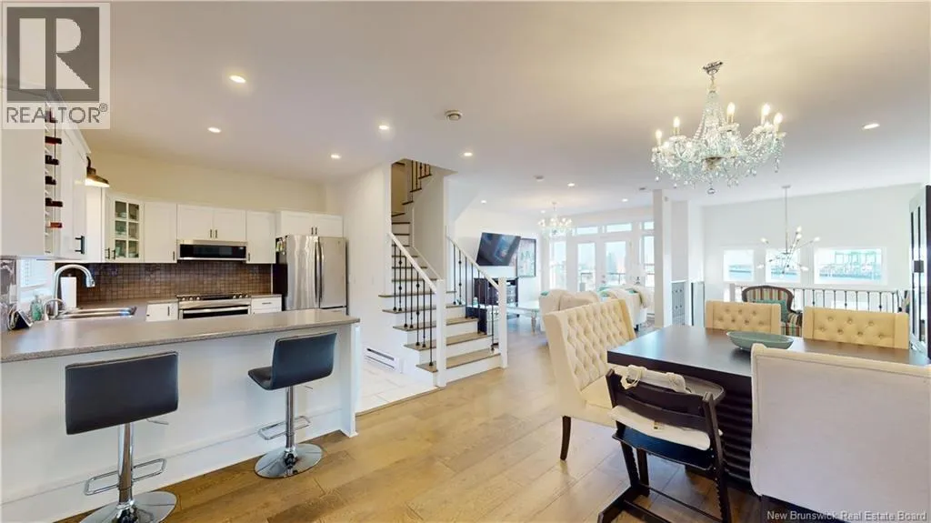 From Paradise Row, or highway, turn onto Millidge Street, just past Brenan's Funeral Home. Take first left onto Moore Street. Step into a lifestyle where comfort, style, and effortless living come together. This executive two-story townhouse offers a front-row seat to Saint John Harbour, giving you daily sunrises, sparkling water views, and a peaceful backdrop that makes home your favourite place to be. Thoughtfully renovated from top to bottom, its designed for those who value low-maintenance living without sacrificing luxury or character. The main floors open layout invites you to relax and entertain with easeflooded with natural light and framed by floor-to-ceiling windows that capture the changing harbour scenery. The sleek, modern kitchen blends seamlessly into the space, making gatherings feel natural and inviting. Upstairs, the primary suite becomes your personal retreat with its walk-in closet and ensuite, while the guest bedroom and versatile flex room adapt to your lifestylewhether you work from home, host visitors, or need a quiet spot to unwind. The walkout lower level expands your living space with a cozy rec room, powder room, and direct access to your own private garage. Outside, choose between two distinct experiences: enjoy the energy of harbour life from the front deckperfect for fireworks, ship watching, and evening cocktailsor slip away to the private back deck with hot tub, where unwinding becomes part of your routine. With off-street parking and a prime location just minutes from Uptown, this home offers the ideal blend of convenience, privacy, and waterfront allure. (id:27476)