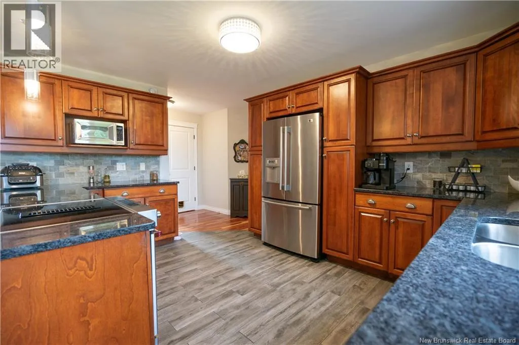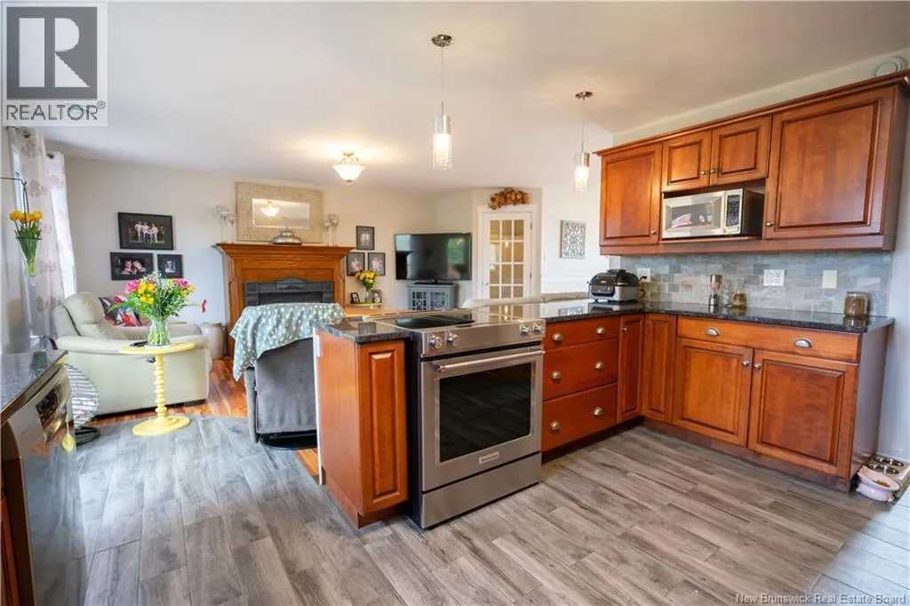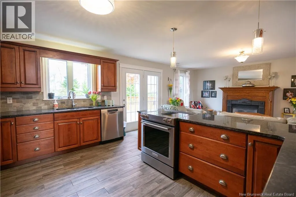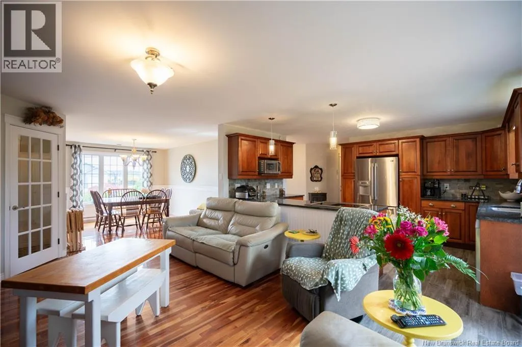 Woodward Ave to Cedarwood Dr Not your cookie-cutter 2 storey, this welcoming home offers a thoughtful layout and exceptional functionality. Step into the front vestibule with a French door opening to a bright family room, kitchen, and dining area designed for comfortable family living & entertaining. Cherry hardwood & tile flooring flow throughout. The family room features a propane fireplace with wood mantel; garden doors lead to a backyard deck. The main floor also has a laundry room with storage and a powder room, separated by a pocket door. A bedroom adds flexibility for guests or multigenerational living, abundant closet space lines every hallway for practical storage. A wide staircase with a large window fills the space with natural light. Upstairs has a den/playroom, primary suite with ensuite, two additional bedrooms (1 with walk-in closet) share a full bath. The ICF foundation basement is drywalled, offering potential for future development with an area plumbed for a bathroom, utility & storage area, and a future family room. Updates: all main & second-level windows (2021), roof shingles (2020, kitchen tile, backsplash, downdraft stove, dishwasher. Enjoy a nicely landscaped, level yard, a double paved driveway with additional paved parking beside the double insulated garage. This home offers easy access to schools, including Centre scolaire Samuel-de-Champlain, UNB Saint John, the Regional Hospital, Dalhousie Medical School, RKYC, Rockwood Park Golf Course, recreational facilities, and Uptown. (id:27476)
