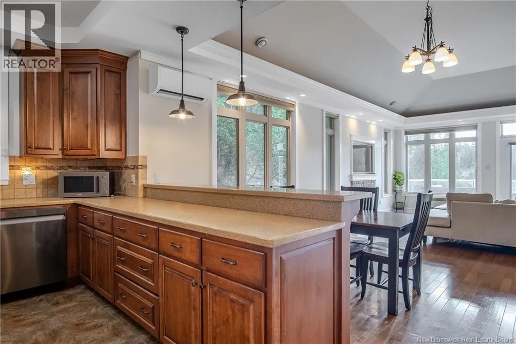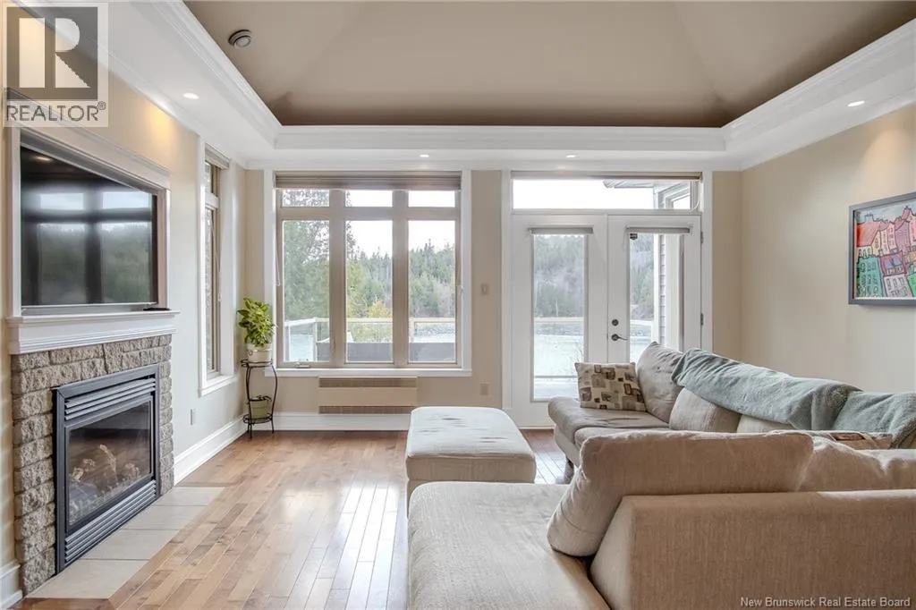 Rothesay Rd to Ashburn Rd to Drury Cove Rd, left on Upper Deck Lane Discover an exceptional 2-level garden home style condo offering over 2,600 sq ft of beautifully finished space in the sought-after Drury Cove community. Residents enjoy shared use of the waterfrontage including a pathway to an exclusive-use dock, plus this unit includes its own mooring directly out front. The main level welcomes you with a spacious foyer and an open-concept kitchen, dining and living area with mini-split heat pump and propane fireplace, framed by serene water views. The custom kitchen features rich cabinetry, granite countertops, and a peninsula with seating for 3 to 4. Also on this level are a convenient home office, main-floor laundry and a generous primary suite complete with a large walk-in closet and 4-piece ensuite... wake up to breathtaking water views! Step onto the water view deck to take in stunning sunsets over the cove. The fully finished lower level offers a massive rec room, full bathroom, 3 additional bedrooms, ample storage and walk out access to a private, peaceful backyard. A rare double garage and quality construction throughout make this home truly stand out. Condo fees of $700/month include water & sewer, exterior maintenance, lawn care and snow removal. Ideally located near shopping, the hospital, UNBSJ, and quick highway access, this is a remarkable opportunity in one of the areas premier waterfront communities. (id:27476)