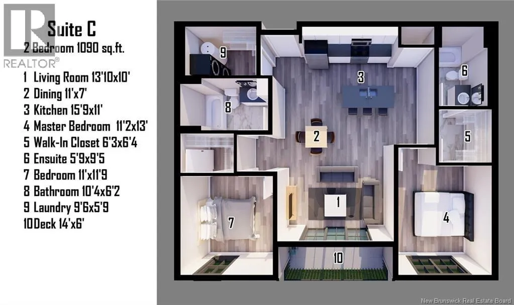 From Millidge Ave or Somerset PET FRIENDLY!! Welcome to Burlington Flats. These newly built apartments are built with modern living in mind and the view gets better and better with each floor. Each unit has a 14x6 deck, perfect for enjoying your morning coffee or a glass of wine while watching the sunset in the evening. Located in a highly desirable location in close proximity to Uptown Saint John as well as the Saint John Regional Hospital and UNB in Millidgeville. Style C consists of 2 bedrooms and 2 full bathrooms with 1090 square feet of living space. Rent price includes internet, tenant is responsible for heat and lights. Surface parking spots are limited and assigned to tenants on a first come first serve basis but plenty of underground parking spaces remain. Enjoy the security of underground parking and the bonus of included storage available for only $175 per month. Pets are allowed subject to approval, no exotic pets. Reserve your apartment now, contact today for a rental application. (id:27476)