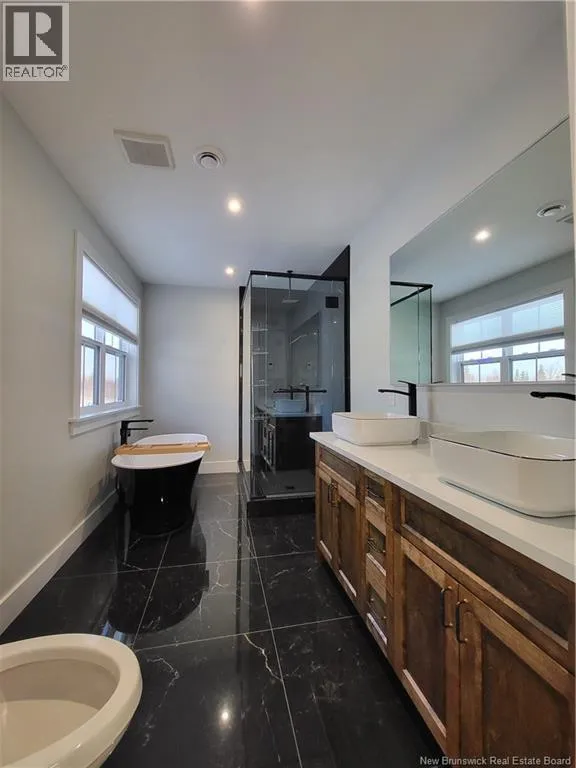 Off Sandy Point Road/ Foster Thurston Drive Welcome to 20 Fieldstone Drive in the conveniently located Fieldstone Estates Subdivision within five minutes to the Saint John Regional Hospital and University of New Brunswick via automobile. This one-year-old, 4 Bedroom with a 5th potential (main level office) hosts open concept Kitchen, Living, and Dining Area. This home features radiant in-floor heating on the entire main floor and double-car garage with upper bathrooms with electric in-floor heating and three mini-splits that are owned. In the kitchen area you will find stainless steel appliances, quartz counter tops and a desirable walk-in pantry. Dining area features a built-in dry bar for your entertaining needs. Upon garage entry you will find a convenient mudroom, main floor laundry and a bonus mechanical room for an abundance of storage. The upper level hosts the master bedroom featuring and ensuite with dual sinks, soaker tub and sleek stand-up shower and spacious walk-in closet and the three additional bedrooms. The exterior host front porch, back deck decorative concrete and fully landscaped with additional well-built storage shed as the back of the property. (id:27476)