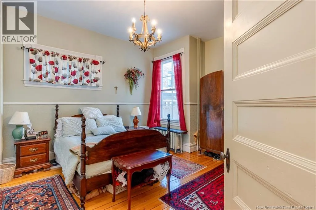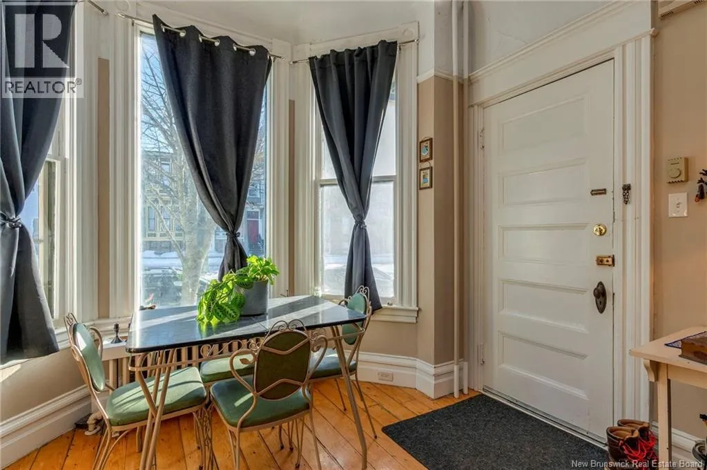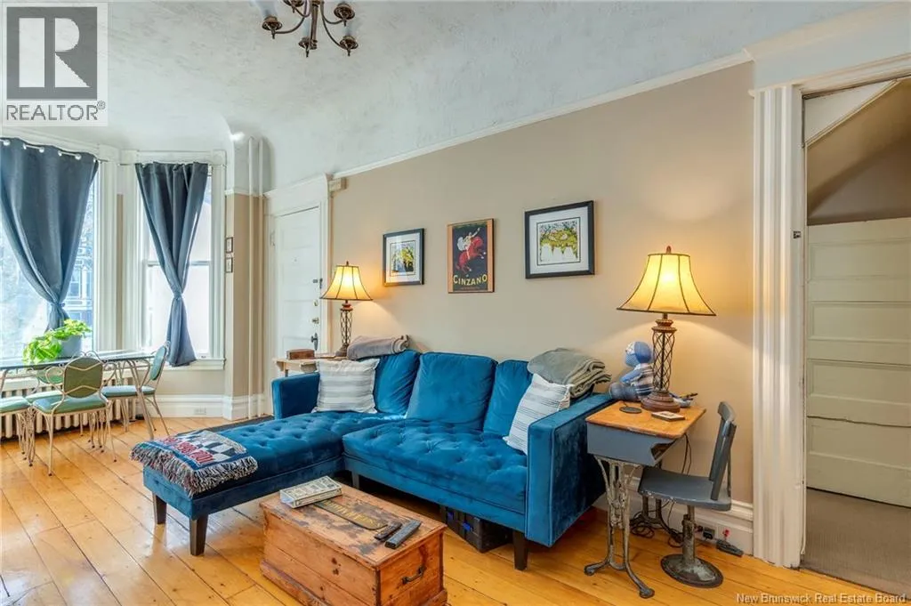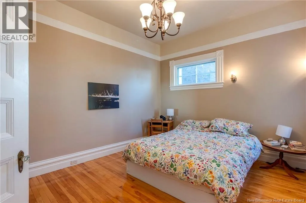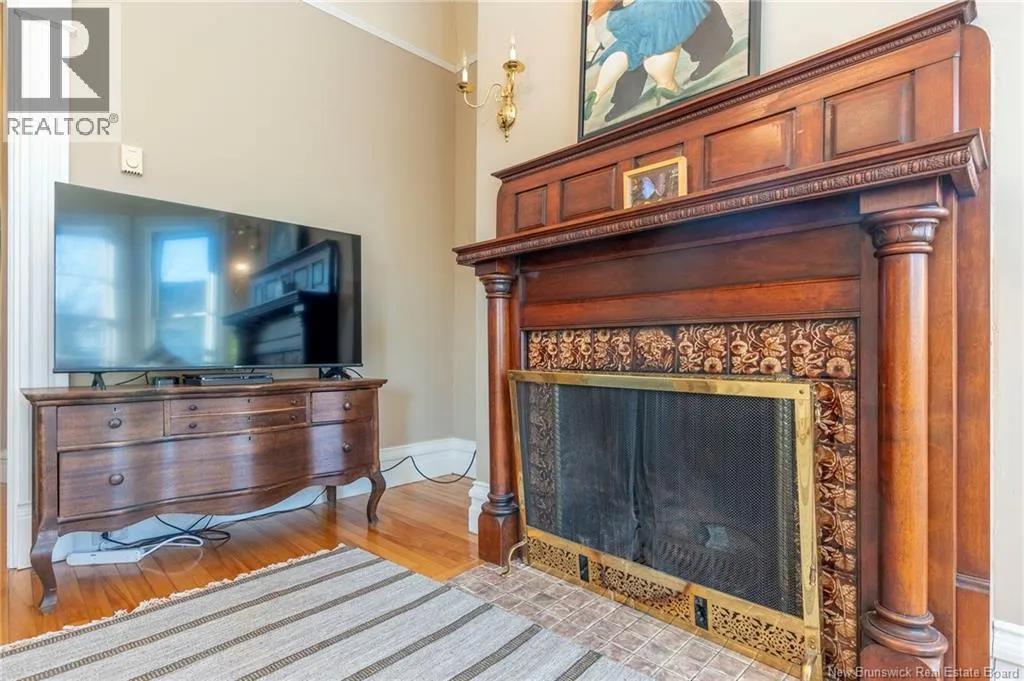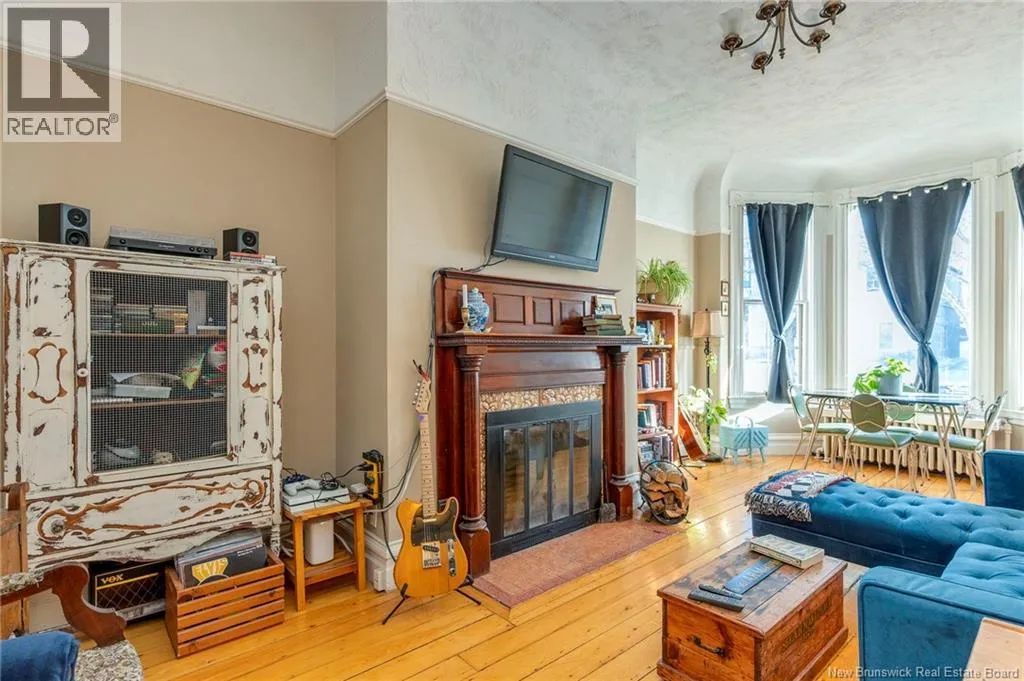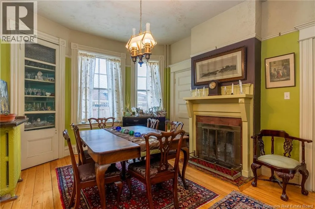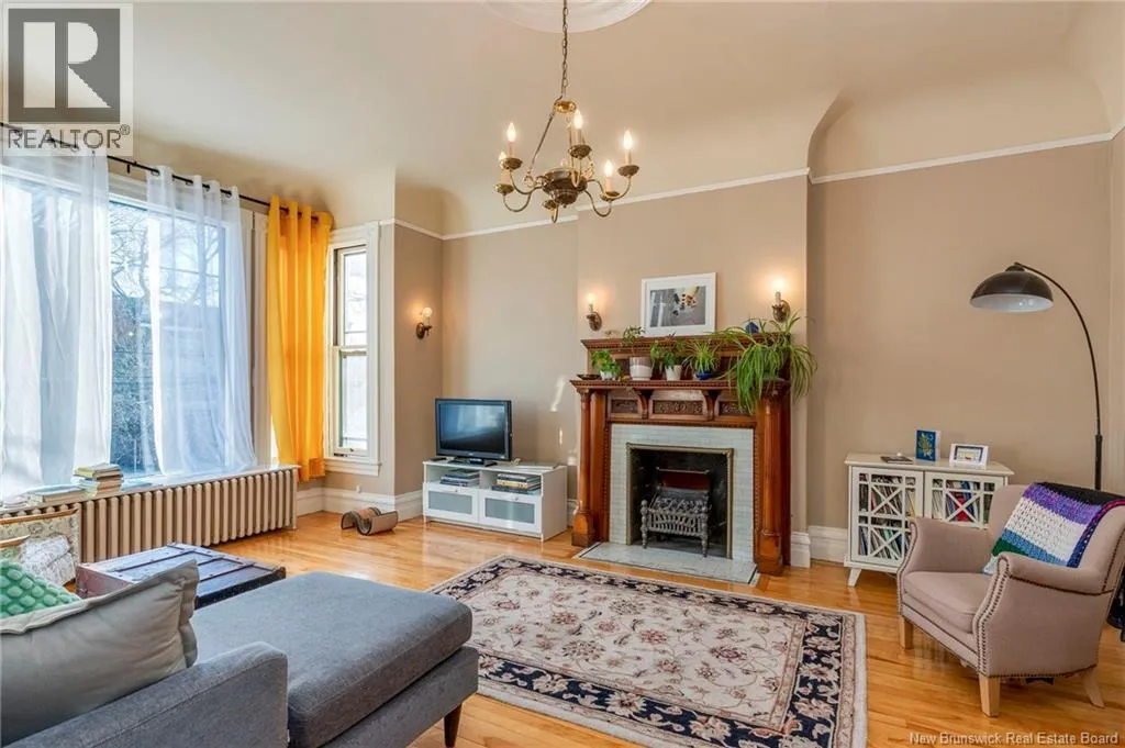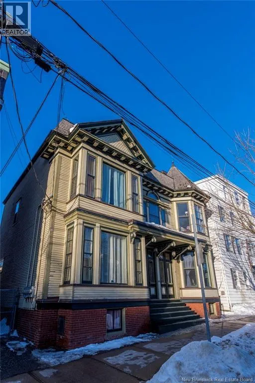 Between Carmarthen and Wentworth This 1905 Queen Anne style Henderson House, stands among the most distinguished heritage properties on King Street East, set within a streetscape of mature trees and historic homes that predate the Great Fire of 1877. Its exterior displays scalloped cedar shingles, stained glass, bay and hexagonal windows, dentils, double entry doors, and a copper capped turret. Within walking distance of King Square and the City Market, the property offers over 6,000 sqft of living space with high ceilings, working fireplaces, in floor heating, and well preserved woodwork. The owners unit exceeds 2,800 sqft and includes four bedrooms, three bathrooms, hardwood flooring, two fireplaces, a finished basement suited to study or recreation, and a rear shed with a workshop, a layout that could rent for approximately $2,500 per month. Three additional rental units, two two bedroom apartments and one one bedroom apartment, retain character through hardwood or softwood flooring, fireplaces, French doors, generous bedrooms, and detailed moldings. All units are separately metered with long term tenants in place. Current rents total roughly $89,400 annually, while estimated expenses of $10,800 for heat, $450 for the house meter, $6,761 for taxes, $2,640 for water and sewer, and $6,222 for insurance produce approximate annual costs of $26,873 and an estimated net income of $62,527, offering a rare chance to acquire a landmark with lasting appeal. (id:27476)