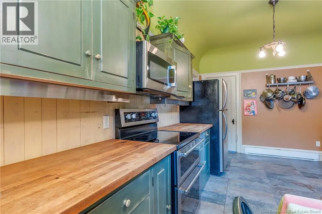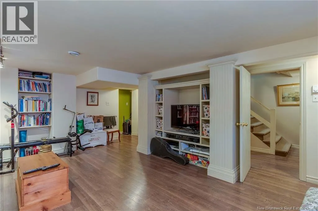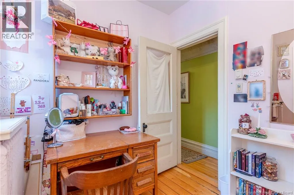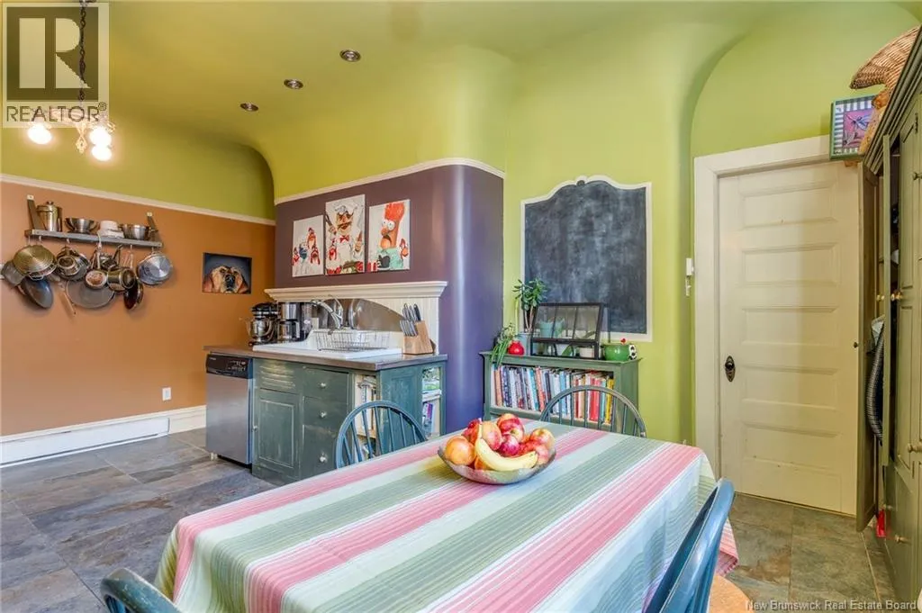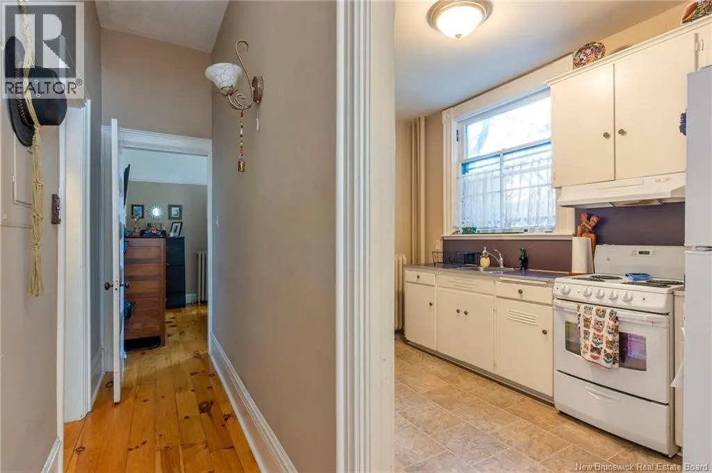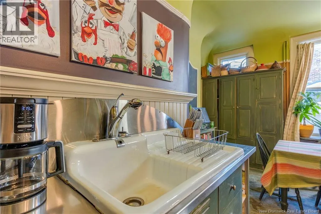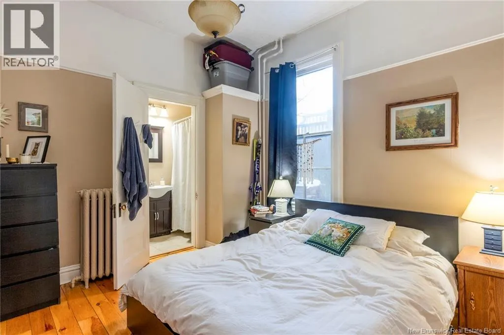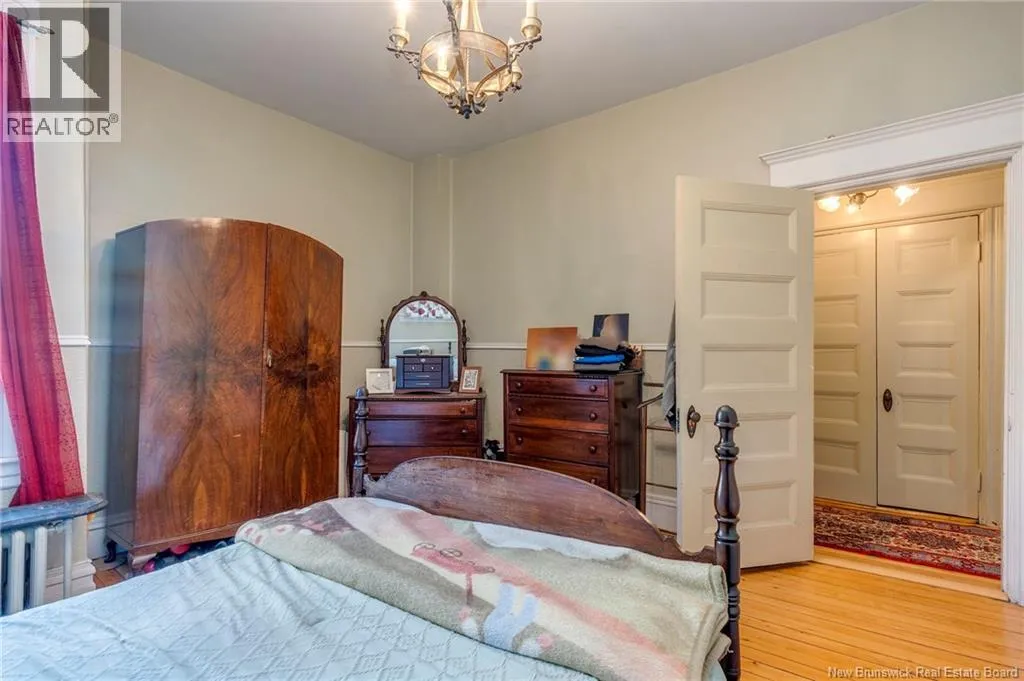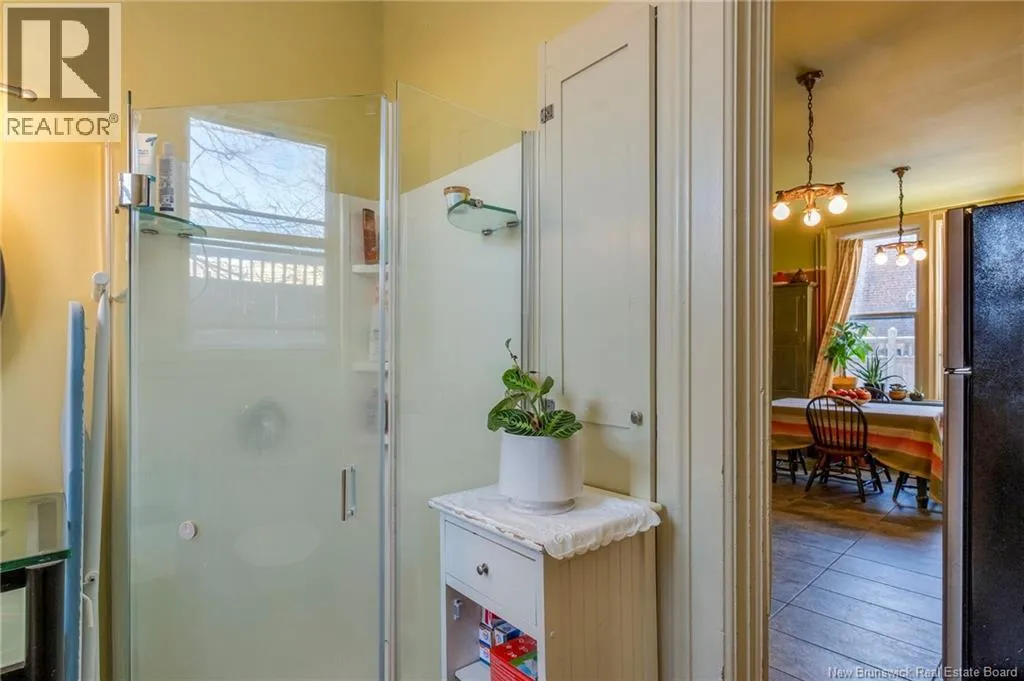 Between Carmarthen and Wentworth This 1905 Queen Anne style Henderson House, stands among the most distinguished heritage properties on King Street East, set within a streetscape of mature trees and historic homes that predate the Great Fire of 1877. Its exterior displays scalloped cedar shingles, stained glass, bay and hexagonal windows, dentils, double entry doors, and a copper capped turret. Within walking distance of King Square and the City Market, the property offers over 6,000 sqft of living space with high ceilings, working fireplaces, in floor heating, and well preserved woodwork. The owners unit exceeds 2,800 sqft and includes four bedrooms, three bathrooms, hardwood flooring, two fireplaces, a finished basement suited to study or recreation, and a rear shed with a workshop, a layout that could rent for approximately $2,500 per month. Three additional rental units, two two bedroom apartments and one one bedroom apartment, retain character through hardwood or softwood flooring, fireplaces, French doors, generous bedrooms, and detailed moldings. All units are separately metered with long term tenants in place. Current rents total roughly $89,400 annually, while estimated expenses of $10,800 for heat, $450 for the house meter, $6,761 for taxes, $2,640 for water and sewer, and $6,222 for insurance produce approximate annual costs of $26,873 and an estimated net income of $62,527, offering a rare chance to acquire a landmark with lasting appeal. (id:27476)