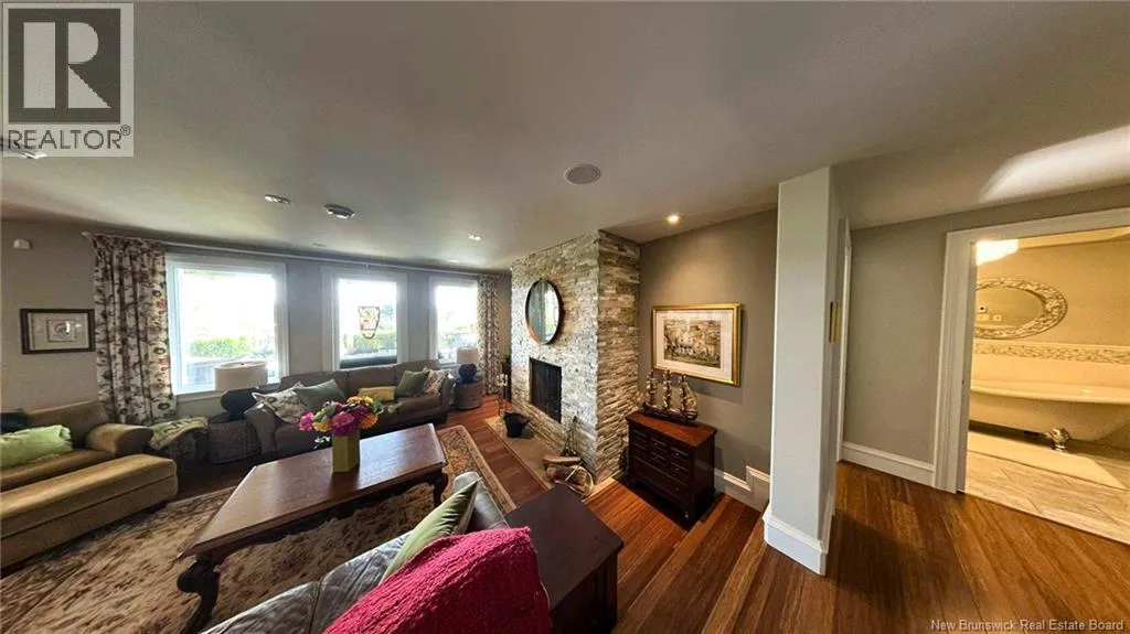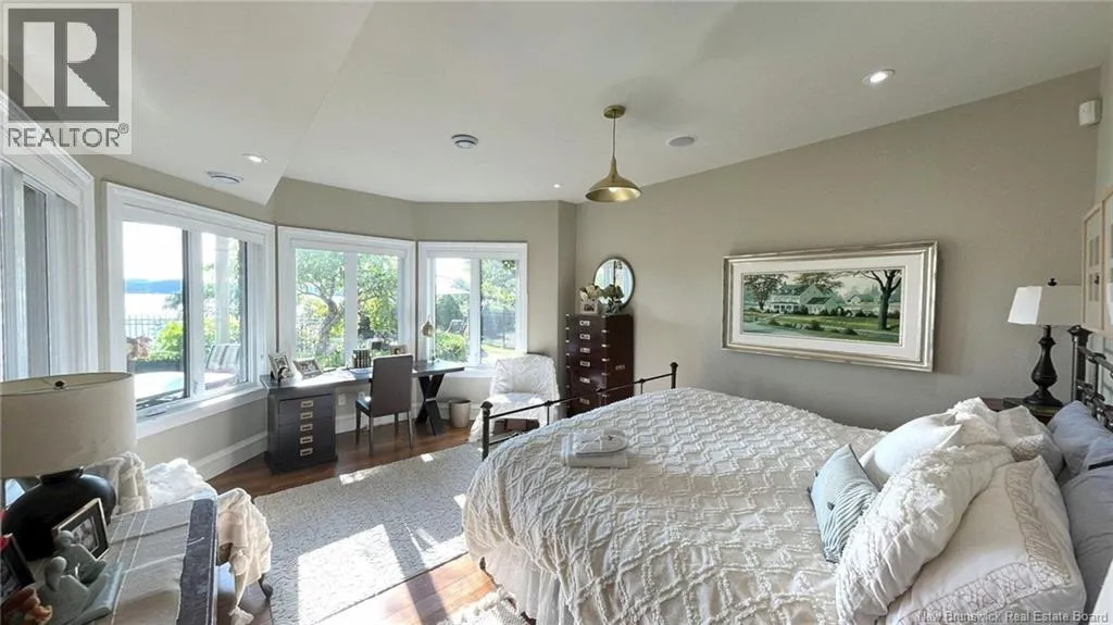 Somerset St and Boars Head Rd to Anchorage Ave. This stunning 4-bedroom plus office, 3-bath waterfront home captures the essence of luxury living with absolutely breathtaking views from every angle. With private stairs leading directly to the beach, you can fully immerse yourself in the beauty of the water just steps from your door. The spacious 3-car garage not only features epoxy floors and an EV hookup, but also includes a dedicated garden center with sinkperfect for those who love both elegance and function. The fully fenced grounds are enhanced with a sprinkler system and wiring for a robotic mower, ensuring effortless outdoor living. Inside, both levels are finished to perfection with complete kitchens, high-end appliances, fireplaces for cozy evenings, an integrated sound system, and expansive decks designed to showcase the remarkable views. Heat pumps provide year-round comfort, making every season enjoyable. Ideally located near the Regional Hospital, UNBSJ, and all amenities, this home is a rare opportunity to embrace luxury, comfort, and the magic of waterfront living. (id:27476)