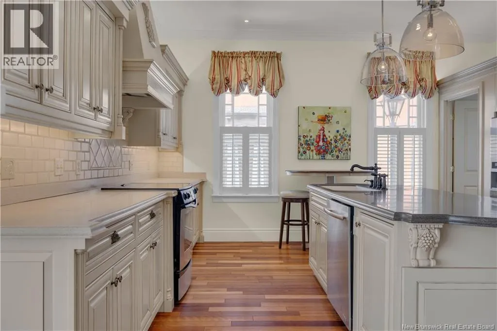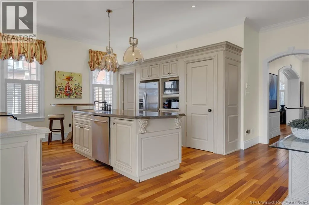 This is located on the corner of Germain and Princess. Located among some of the finest homes in Uptown Saint John, this executive residence offers refined living in one of the citys most desirable and walkable neighbourhoodsjust steps to the harbourfront, restaurants, and Uptown amenities. Inside, the home features Brazilian Cherry hardwood flooring throughout, quality finishes, and thoughtful design. The main level includes an office, formal dining room, and an open-concept living area anchored by a high-end kitchen with premium finishes and a walk-in pantry. A bright sunroom extends the living space, while a full bathroom and laundry add convenience. Upstairs, the primary suite is the showpiece of the home with a spacious bedroom, walk-in closet, and dressing room with custom built-in cabinetry. The ensuite features a freestanding tub, walk-in shower, and Swarovski crystal fixtures, also found in the walk-in closet and foyer. A second bedroom and full bathroom complete this level. The lower level offers a fourth full bathroom, office, bonus room, large storage area, and access to two finished, heated single garage bays. A standout feature of the home is the extended outdoor living space. A newly built two-level TimberTech composite deck includes a Sabre stainless steel outdoor kitchen, gazebo with Bromic heater, and natural gas servicecreating a comfortable outdoor environment for up to eight months of the year. Custom planter boxes complete the setting, while additional parking accommodates up to three more vehicles. (id:27476)