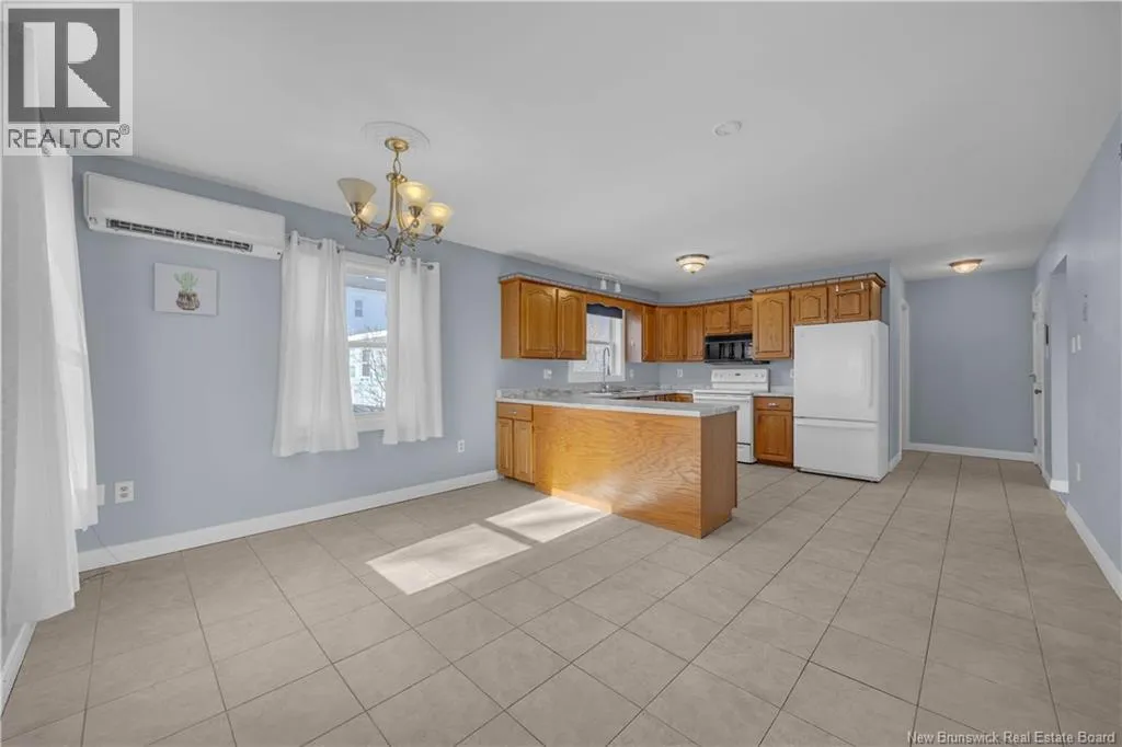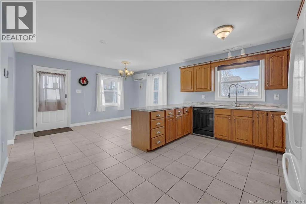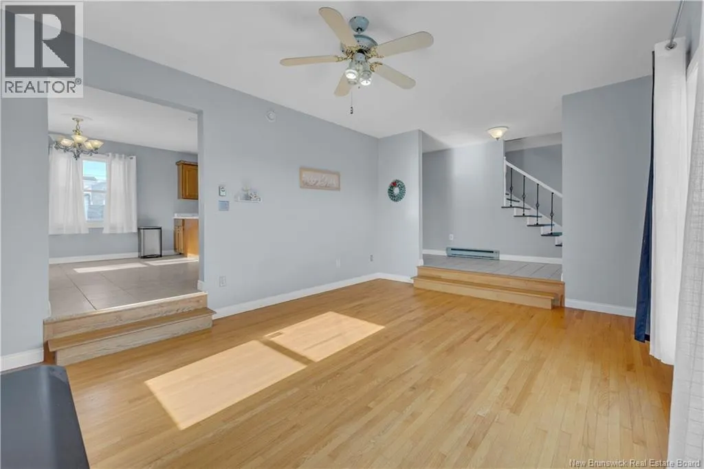 On Lancaster Street. After Woodville Road or before Suffolk Street. Welcome to 381 Lancaster Street, a spacious and well-maintained semi-detached home located on the desirable west side of Saint John. Set in a great neighbourhood and close to all amenities, this property offers incredible value with stunning views of Uptown and the harbour. The exterior combines brick and wood siding, complemented by a paved driveway, single-car garage, and a landscaped, fenced yard that is perfect for kids, pets, or relaxing outdoors. Inside, youre greeted by a generous entryway with a coat closet. The sunken living room features hardwood floors and a cozy wood stove, creating a warm and inviting atmosphere. The kitchen and dining area are open to each other, making it an ideal space for entertaining, and are equipped with a heat pump for efficient heating and cooling. From here, step out onto the deck and that is great for BBQs. The main level is completed by a bathroom with a shower and laundry. Upstairs, the spacious primary bedroom offers breathtaking harbour views, a walk-in closet, and plenty of natural light. Two additional well-sized bedrooms, both with ample closet space, and a large main bathroom featuring a jet tub and shower complete this level. The finished lower level adds even more living space with a bonus area, storage room with wash tub, and direct access to the garage. This home has been extremely well cared for and offers exceptional space, natural light, unbeatable views, and all at an affordable price point for todays market. (id:27476)