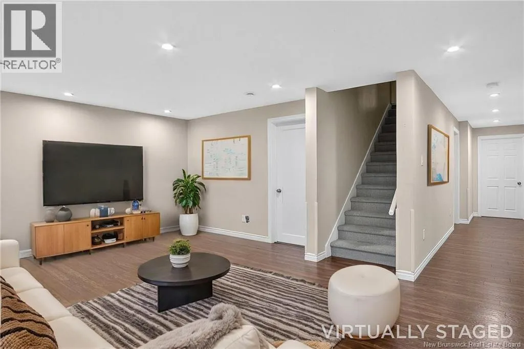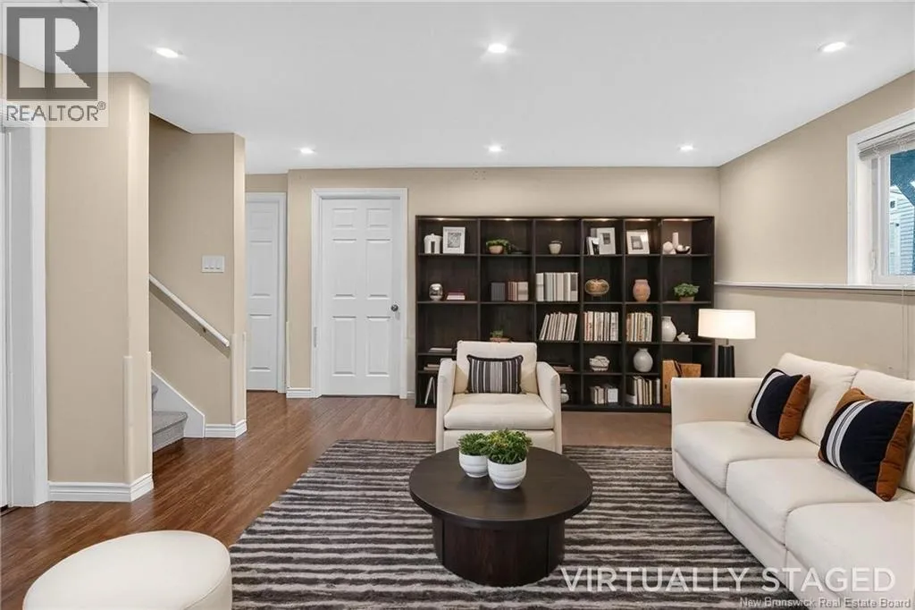 Loch Lomond to Mosaic Dr. Welcome to 43 Mosaic Dr, a beautifully maintained attached garden home offering exceptional functionality and flexible living space in the heart of East Saint John. With over 2,100 sq. ft. of finished living area, this home is ideal for families looking to grow, downsize without compromise, or accommodate multi-generational living. The main level features bright, comfortable living spaces and a spacious kitchen designed for everyday living and entertaining. Two bedrooms are located on the main floor, including a primary bedroom complete with a walk-in closet and private ensuite, along with an additional full bathroom. The layout provides convenient one-level living while still offering separation and privacy. The fully finished lower level expands the homes versatility with two additional bedrooms, a den perfect for a home office, gym, or hobby space, and a large family room ideal for movie nights or a kids play area. A third full bathroom adds further convenience, making the lower level well suited for extended family, guests, or teens needing their own space. With multiple living areas, four bedrooms, three bathrooms, and two family rooms, and an attached single-car garage, this home adds everyday convenience to your needs, additional storage, and easy winter access. Located close to schools, shopping, parks, and all East Saint John amenities, she combines comfort, space, and convenience in a desirable family-friendly neighbourhood. (id:27476)