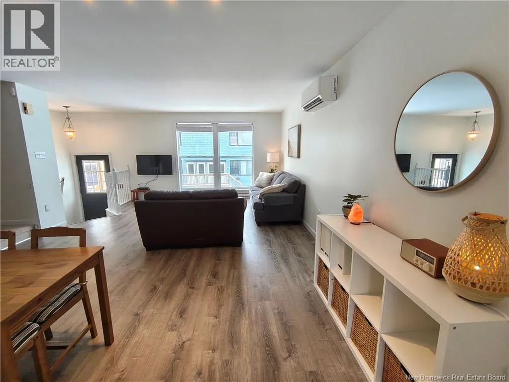 Saint John South Welcome to 16 Harding Street, a bright and stylish end-unit townhouse tucked away on a quiet one-way street in the heart of Saint John South, just steps from Queen Square and Germain Street. This move-in ready home offers a functional layout with an open-concept main level that connects the living room and kitchen, creating a warm and inviting space filled with natural light. The kitchen offers excellent storage and opens onto a large deck with beautiful harbor views, making it the perfect place to relax or entertain. Upstairs, youll find two spacious bedrooms, including a primary bedroom with double closets and easy access to the main bath, along with the convenience of second-floor laundry. The street level features a versatile family room or flex space with walk-out access to the backyard, plus a built-in single garage with extra storage. As an end unit, the property also benefits from a wider lot, private fenced backyard, and off-street parking. With water views, a heat pump for year-round comfort, and an easy walk to Uptown restaurants, cafes, and amenities, this is city living at its best. (id:27476)
