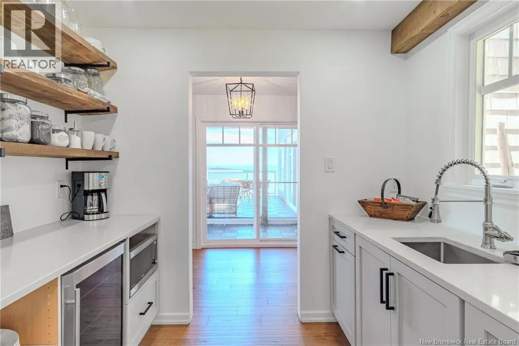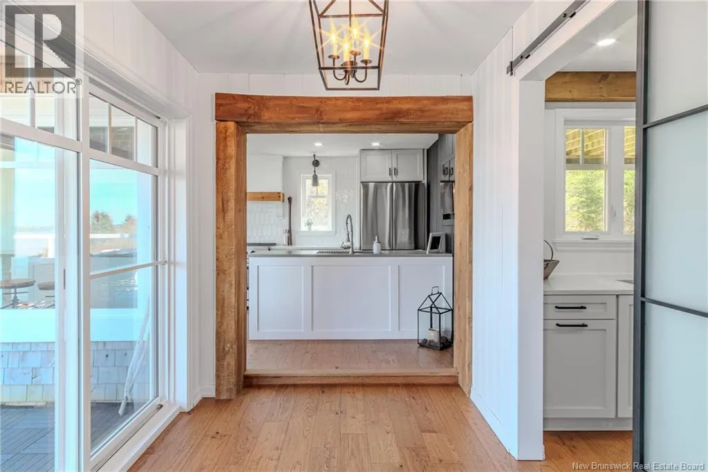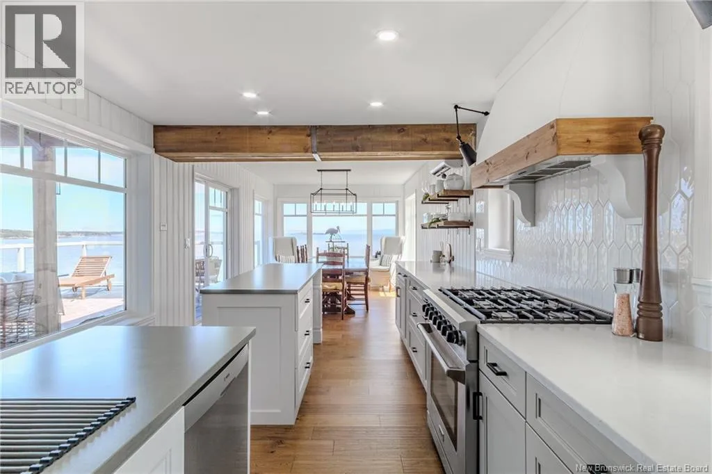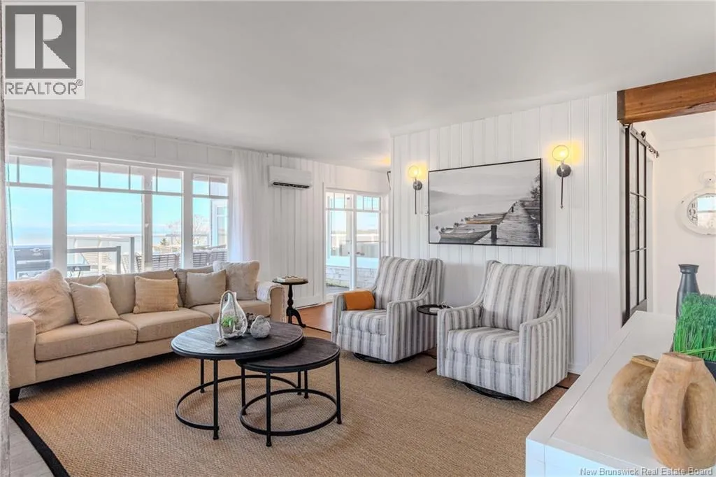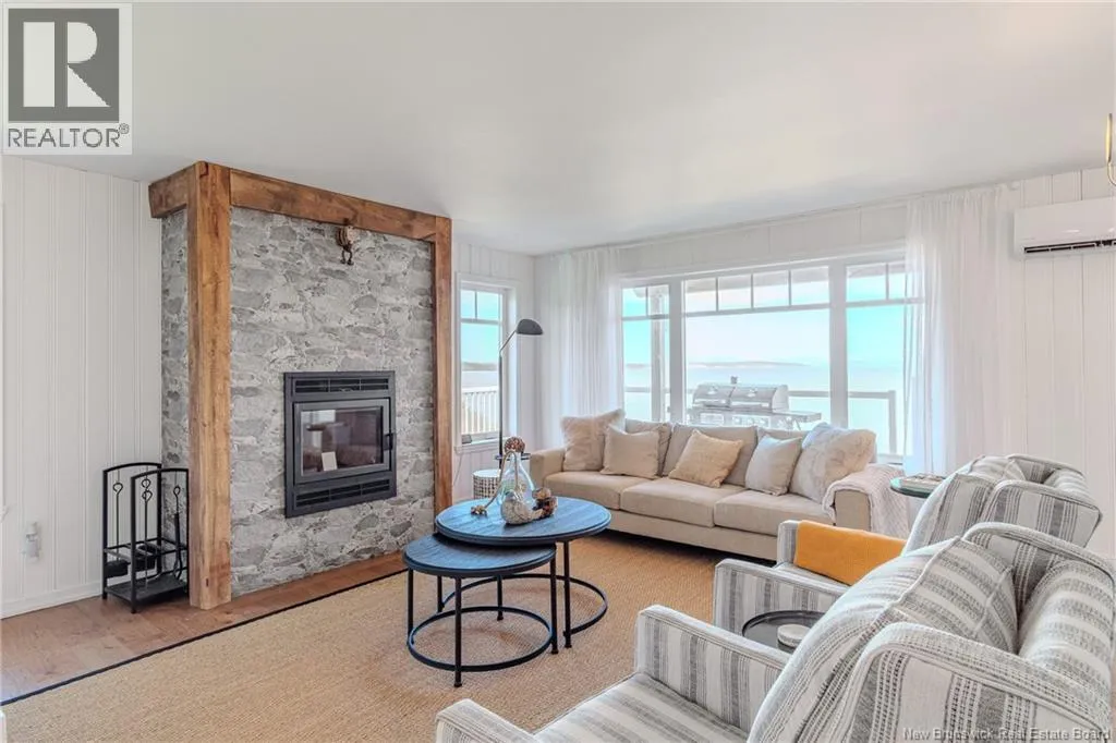 From Lorneville Road to Point Road. Welcome to an elevated coastal escape just 15 minutes from the city, where refined design meets the beauty of the Bay of Fundy. This impeccably renovated oceanfront residence offers over 200 feet of private shoreline and uninterrupted panoramic views, creating a setting that feels completely private and hard to replicate. The main level features a seamless open concept layout anchored by a stunning custom kitchen with quartz countertops, a 36 inch propane range, and beautifully crafted wood cabinetry, complemented by a spacious butlers pantry. The dining area and warm, refined living space with a woodstove insert are perfectly positioned to take in the ever changing ocean views. Two well appointed bedrooms and a full bath complete this level. Upstairs, the primary suite is a true retreat, offering a private balcony overlooking the water, a spa inspired ensuite, and a large walk in closet. The walkout lower level is designed for both relaxation and entertaining, featuring a home theatre, a fully equipped one bedroom guest or in law suite with kitchenette, an additional full bathroom, and a private enclosed hot tub room. Outdoors, the landscaped grounds lead to your own beach access, while the oversized detached garage offers excellent space for vehicles, storage, or a workshop. Thoughtfully curated with high end finishes and energy efficient systems throughout, 396 Point Road is a rare oceanfront offering in a truly special setting. (id:27476)