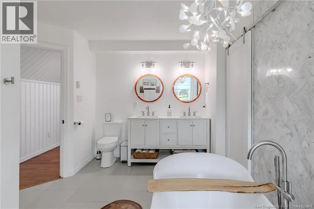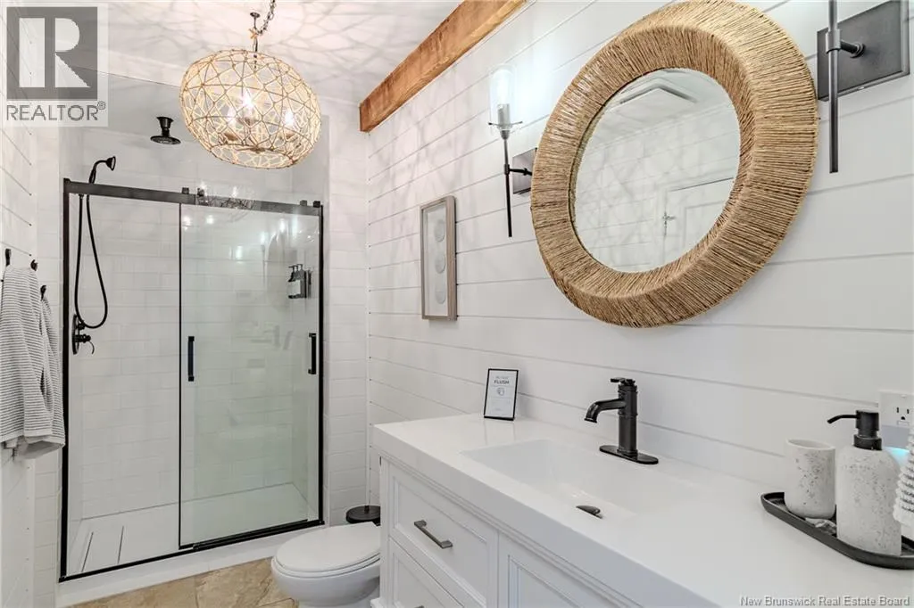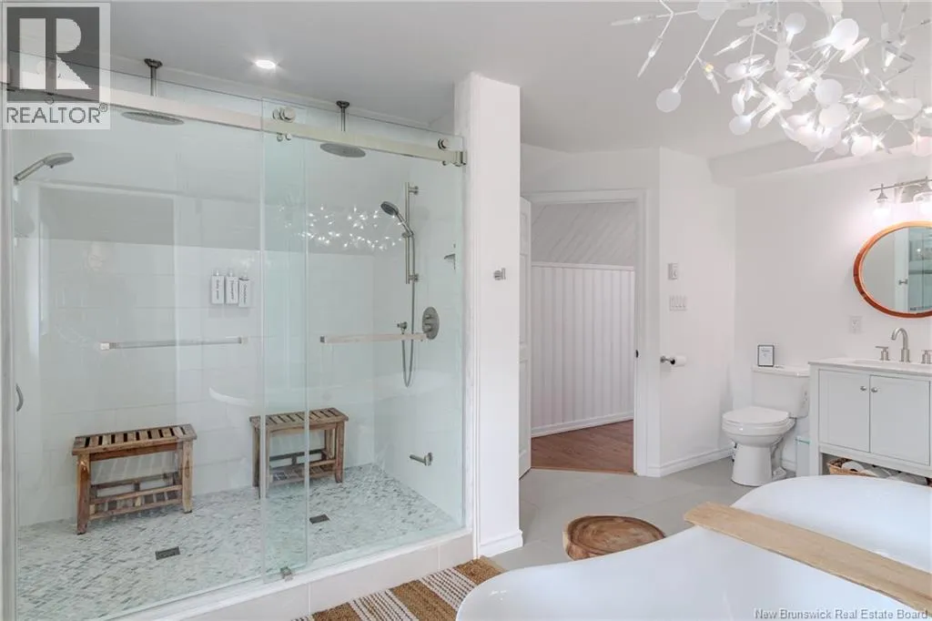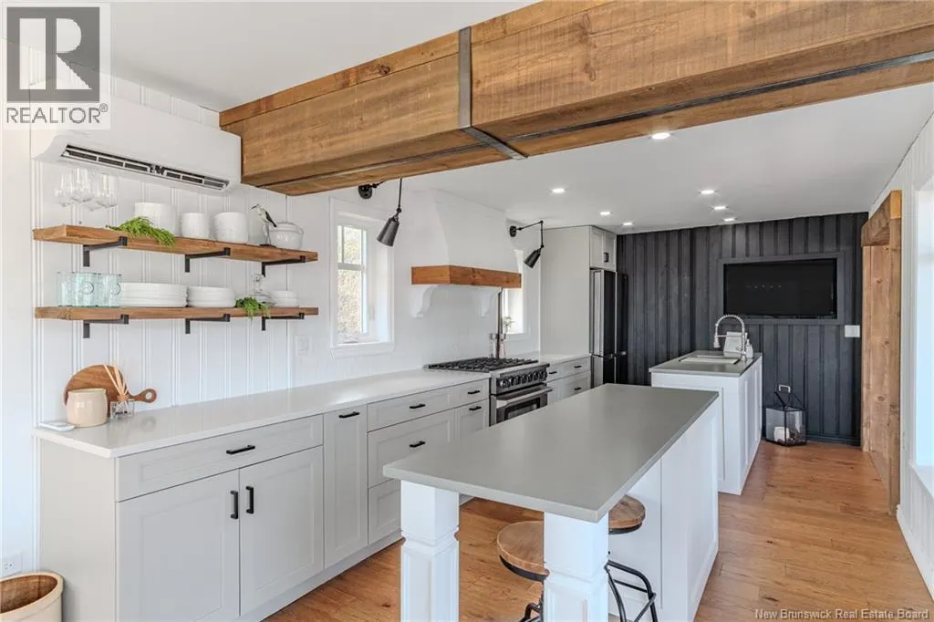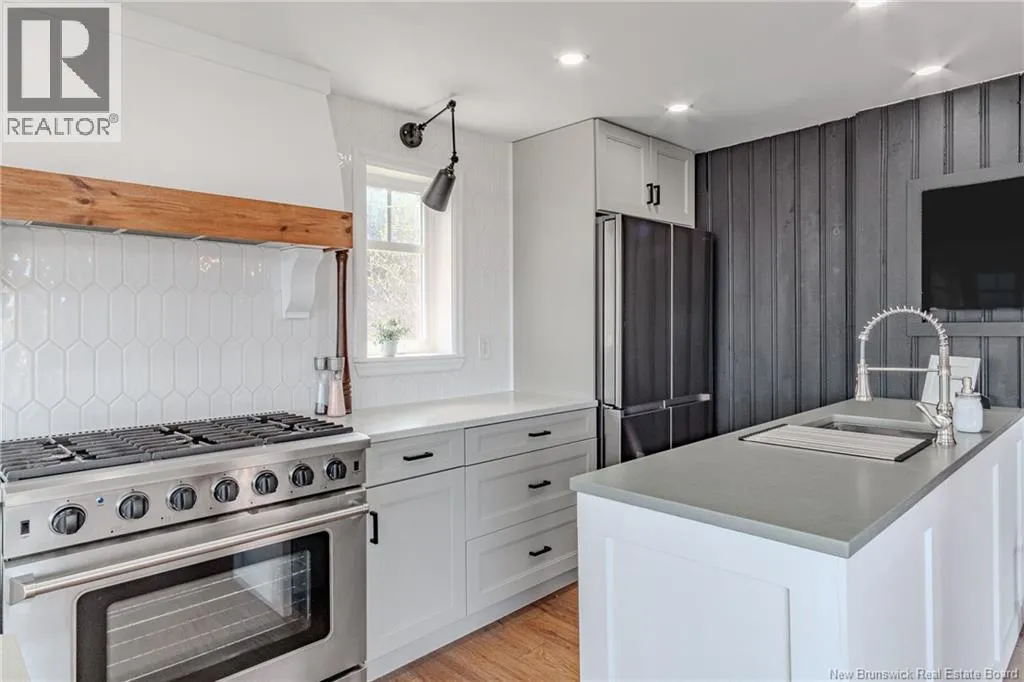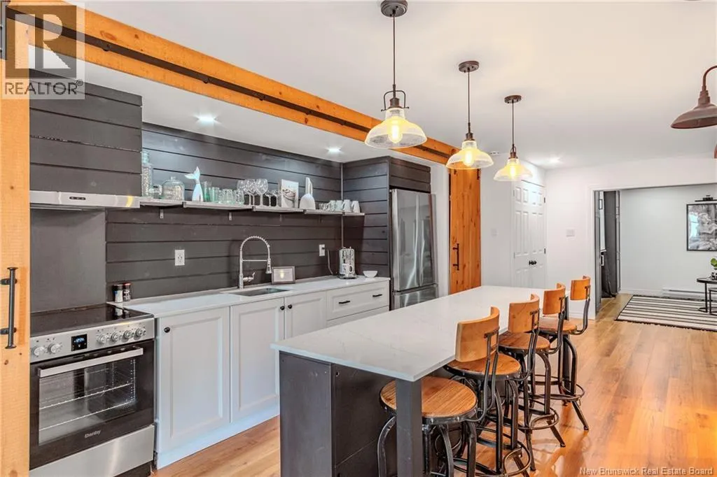 From Lorneville Road to Point Road. Welcome to an elevated coastal escape just 15 minutes from the city, where refined design meets the beauty of the Bay of Fundy. This impeccably renovated oceanfront residence offers over 200 feet of private shoreline and uninterrupted panoramic views, creating a setting that feels completely private and hard to replicate. The main level features a seamless open concept layout anchored by a stunning custom kitchen with quartz countertops, a 36 inch propane range, and beautifully crafted wood cabinetry, complemented by a spacious butlers pantry. The dining area and warm, refined living space with a woodstove insert are perfectly positioned to take in the ever changing ocean views. Two well appointed bedrooms and a full bath complete this level. Upstairs, the primary suite is a true retreat, offering a private balcony overlooking the water, a spa inspired ensuite, and a large walk in closet. The walkout lower level is designed for both relaxation and entertaining, featuring a home theatre, a fully equipped one bedroom guest or in law suite with kitchenette, an additional full bathroom, and a private enclosed hot tub room. Outdoors, the landscaped grounds lead to your own beach access, while the oversized detached garage offers excellent space for vehicles, storage, or a workshop. Thoughtfully curated with high end finishes and energy efficient systems throughout, 396 Point Road is a rare oceanfront offering in a truly special setting. (id:27476)