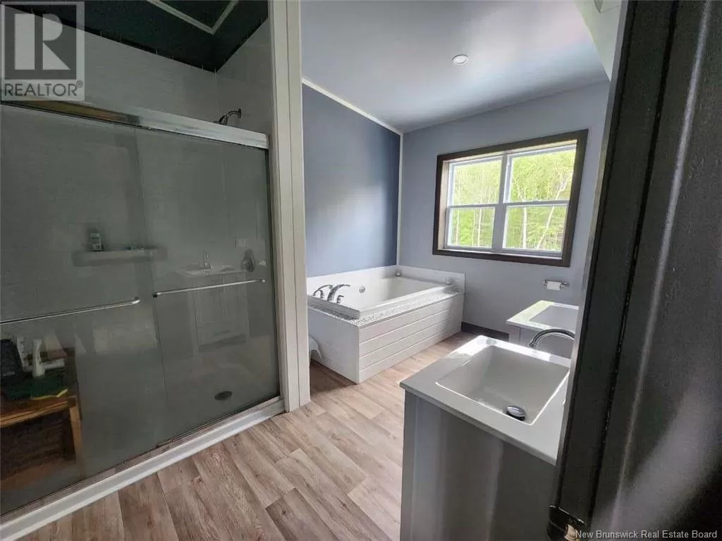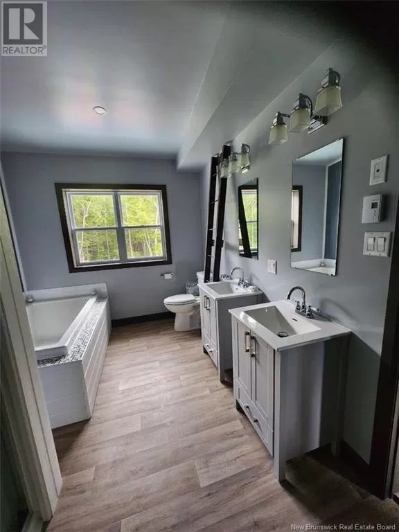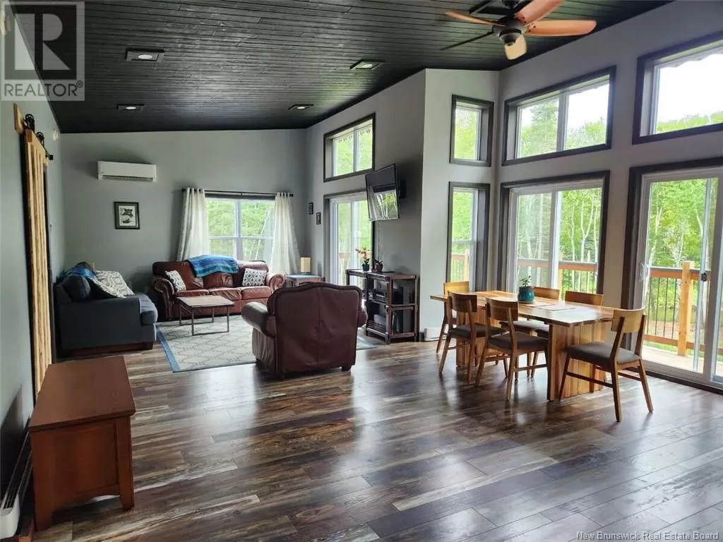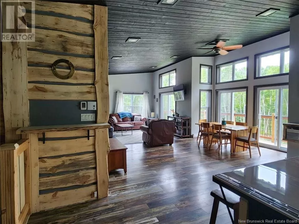 For more info please click the Multimedia button. Immaculate riverfront 4 Bed 2.5 Bath on private treed lot. Easy access to Hwy 2, Grand falls(10 mins) and Edmundston(20 mins) are a short drive to many amenities with St. Leonard just seconds away! Enjoy river views from almost every room in the home. The main floor offers 3 of the bedrooms, one of which has its own 3 piece ensuite bath. This floor also features it own living room, main floor laundry and large mudroom closet. The upper level features a large master bedroom with 5 piece ensuite with large soaker tub and large closet. The room easily accommodates a king size bed with plenty of room for side tables. The open concept living/dining/kitchen area is provided with plenty of natural light via the 12 sliding doors and transom windows. the kitchen has a large 8x3ft island, dual fridge/freezers, electric stove, dishwasher, over range microwave and large pantry/workspace for prep and bakers needs. The basement is completely open concept with studded and drywalled walls, ready for even more living space. There you will find a wood stove with duct work for circulation, brand new energy efficient heat pump water heater(2024) for even more savings, full Culligan water filtration(2022) and deep freezer. The rear of the home features a two tier deck with a hot tub, gazebo(2023), and porch swing to enjoy the sounds of nature. 2 car ports(15.7x24ft) are on both sides of a (16.5x24) garage/workshop. Don't miss the opportunity! (id:27476)