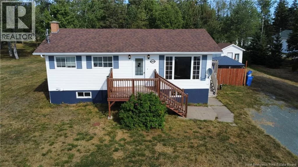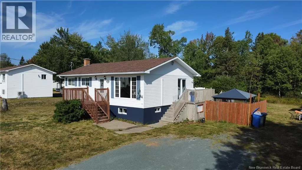 Coming from Bathurst, off Route 11 take exit 321 toward Nicholas-Denys, route 315. Turn left onto rue Nicholas Denys, route 315. Continue onto Ch Nicholas Denys, the destination in on your right. Welcome to this charming property, set on over ¾ of an acre of land, situated 10 minutes from Bathurst! The main floor features an open-concept design with a bright kitchen, with a large center island, and patio door access to a lovely deck. You can also find a cozy living room, along with two generously sized bedrooms and a full bathroom. The finished basement offers even more living space with a family room, recreation room with a bar, a 2-piece bath, laundry area, and plenty of storage. Decent upgrades include a new patio area with privacy fencing, updated electrical, an ultra-violet light system for the water, and a convenient storage shed. As a bonus, all furniture is included in the sale! Dont miss your chance to own this well-maintained home on a beautiful lot! (id:27476)