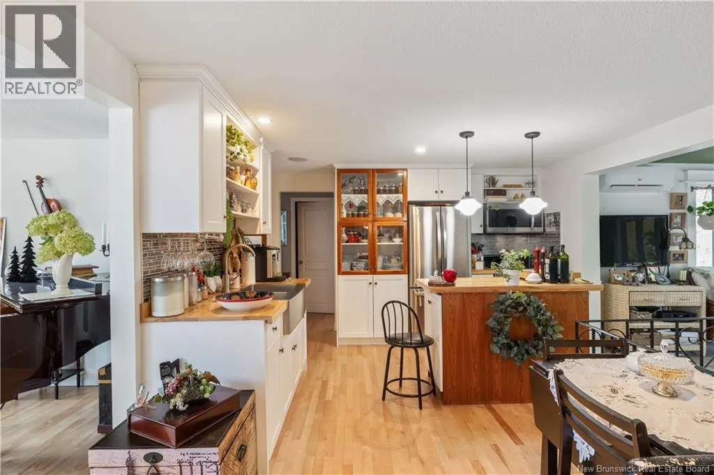 Civic# 22 on Beausejour, Saint Louis De Kent Welcome to this charming wood siding bungalow nestled in the heart of Saint-Louis-de-Kent! This warm and inviting home sits on a generous and private backyard lot, offering a peaceful retreat just steps away from everyday conveniences. The main level features a cozy foyer that opens into a spacious living roomperfect for hosting friends and family. Enjoy meals in the formal dining room, while the large kitchen provides ample space for cooking and entertaining. You'll find two comfortable bedrooms (ensuite in primary), 4-piece bathroom, and a convenient laundry area with additional storage. The bright family room at the back of the home overlooks the lush yard and features a cozy wood stove, perfect for chilly evenings. The home is also equipped with a mini split heat pump for efficient heating and cooling year-round. Over the years, numerous updates have been completed, blending Victorian charm with modern finishes. Outside, enjoy the back patio and make use of the baby barnideal for storing tools or seasonal gear. The lower level is unfinished but offers excellent storage potential. Located within walking distance to restaurants, grocery stores, clinics, pharmacies, schools, and more. Just minutes to beaches, wharfs, and endless water activitiesboating, kayaking, or simply relaxing by the shore. Only 20 mins to Saint Anne Hospital and 45 mins to Moncton for major retailers including Costco. A beautiful home in an unbeatable location! ** POTENTIAL TO ADD A THIRD BEDROOM** (id:27476)