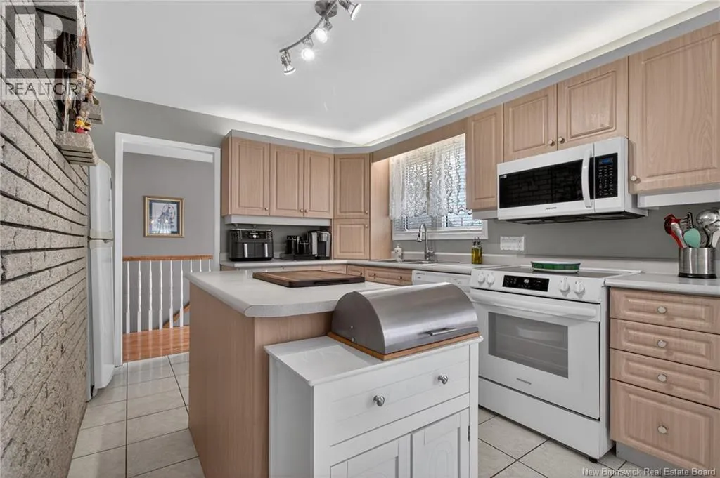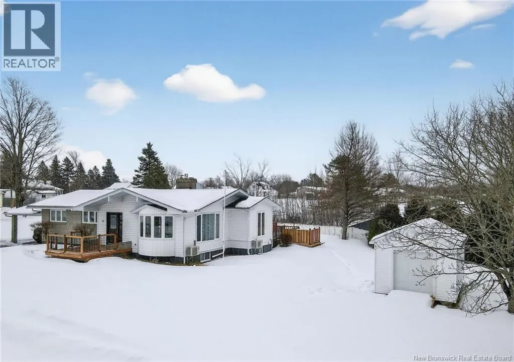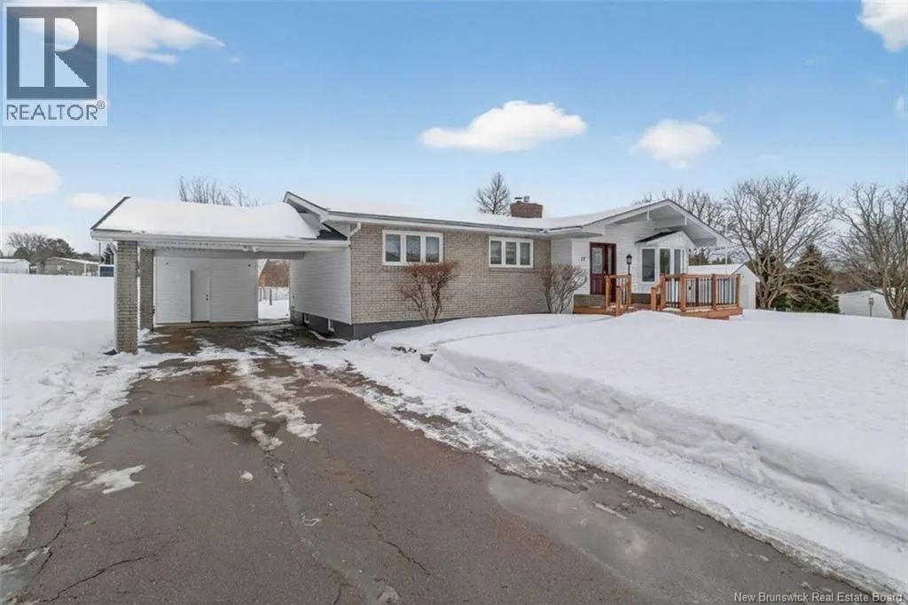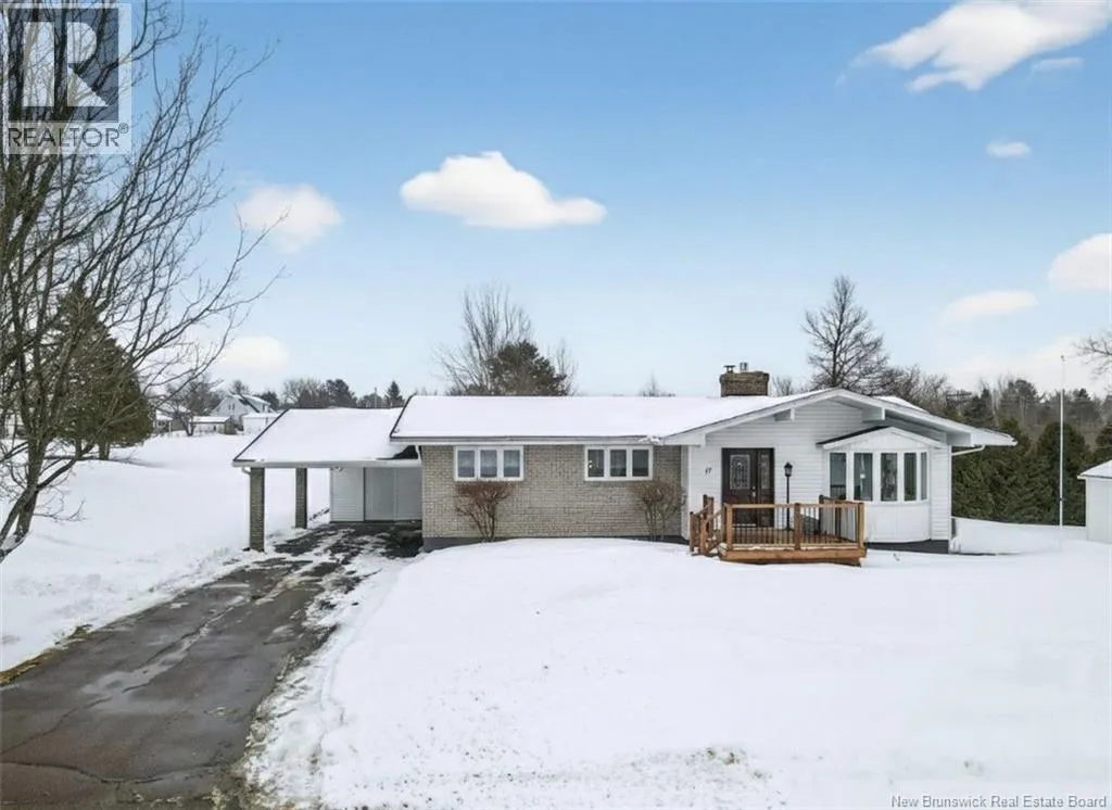 From Shediac - Route 11 past Rexton and Richibucto, take exit #69 to St. Louis-de-Kent to Principale St. drive straight until on your left Soleil Couchant Street drive to # 17 on the left *Click on link for 3D virtual tour of this property* Welcome to this beautifully maintained home offering timeless curb appeal with its crisp white exterior, new vinyl siding, updated windows, covered single carport & fully fenced backyard, ideally located within walking distance to schools, restaurants, stores, pool & everyday amenities, and just steps to the river. A spacious front deck creates a warm welcome & the perfect setting for morning coffee or relaxing summer evenings. Step inside to a bright entrance that opens into a sun filled living room featuring hardwood floors, oversized windows & a stunning brick fireplace that adds character & warmth. The layout flows seamlessly into the dining area with patio doors leading to the back deck, ideal for entertaining & everyday living. The kitchen offers abundant cabinetry, generous counter space & a central island for added prep & storage. The main level includes 3 comfortable bedrooms & a full bath with excellent storage. The lower level expands your space with a large family room, 1 non confirming bedroom, second full bath, laundry area & additional storage. Two mini splits provide efficient heating & cooling. The private backyard also features a storage shed & newly built workshop. Complete with 3 bedrooms, 2 full baths & carport convenience, this home shows pride of ownership throughout.Come experience it in person and schedule your viewing today! Lot: (approx) 107'x107' (id:27476)