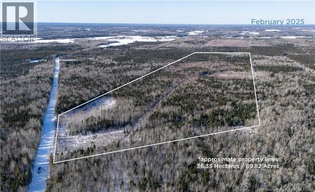 Access from the east: from route 490, head west on Village Des Cormier / Cormier Village Road. Follow the road for 8.5km and the lot will be on your right. Access from the west: from route 126, head east on Route 485. Turn right onto Village Des Cormier / Cormier Village Road. Follow the road for 2.5km and the lot will be on your left. There will be signs clearly marking the lot as well as the 9 acre lot next door that is also for sale in a different listing. The driveway has a gate in front of it. You can open the gate and use the driveway if you like, but it is very rough on cars and we have only taken a truck about halfway in. The driveway belongs to THIS land, not to the 9 acres next door. PICTURES AND VIDEOS TO BE ADDED MONDAY EVENING! 90 acres of serenity!! You have to walk this land to experience the magic! Trees of all kinds, colours, and sizes, from a small portion of new growth to trees so large you can't wrap your arms around them! Mushrooms, berries, and animal scat from deer, moose, and bears! Almost one kilometre of roads and many more trails to walk and things to see. A gorgeous pond that never runs dry. Enter the woods and feel the magic of nature around you! There is a camp of approximately 16x20 on the lot that needs repair. There is also an old sugar shack on the lot, as well as a small barn. Both are in need of repair. Less than 10 minutes to Hilltop Variety Store for hot food, groceries, and gas. Less than 10 minutes drive from the Saint Paul Fire Department. Under 40 minutes to Moncton or to sandy beaches. Great for an off-grid home, a camp, or a woodsy cabin. This land falls within the boundaries of the Kent Regional Service Commission. The lot has not been appraised for taxes yet, so the taxes are unknown as of yet. Approximately 140 meters of frontage on Village Des Cormier / Cormier Village Road. The road is plowed in winter. No power poles at or near the property. PID 25439837. Vendor is a licensed real estate salesperson in the Province of New Brunswick. There is a 9 acre parcel at the front right/east of the lot that is also for sale in a separate listing (NB127555). (id:27476)