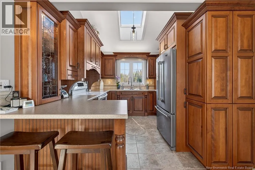 From Bathurst, take Route 11N to the exit for Route 160 towards Saint-Sauveur. From Tracadie, take Route 160 towards Saint-Sauveur; the house will be on your right. Upon arrival, the property stands out with its solid and well-built concrete front terrace, enhanced with aluminum railings that add a warm and inviting touch. This space could easily be converted into a gallery to fully enjoy the outdoors. The attached double garage adds significant value, featuring two front doors and two rear doors, for a total of four, offering convenient access. At the back, the property extends over 34 acres, ideal for nature lovers. A wide, well-maintained road leads to the back of the land, perfect for walking, woodlot use, ATV riding, or snowmobiling. Inside, the modern kitchen becomes the heart of the home. Functional and thoughtfully designed, it offers ample storage and a great space for cooking and entertaining. Open to the dining area, it creates a warm and welcoming atmosphere. The main floor includes two bedrooms and a generously sized bathroom. The basement is well laid out and functional, offering a relaxing family room and three bedrooms, one of which could be used as an office or a space for an esthetician or massage therapist. The property features PEX plumbing, a breaker electrical panel, a drilled well with submersible pump, a concrete septic system with leaching field, a water softener, a reverse osmosis system, and a 60-gallon hot water tank. (id:27476)