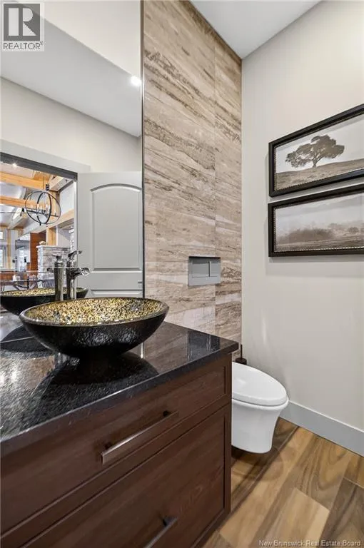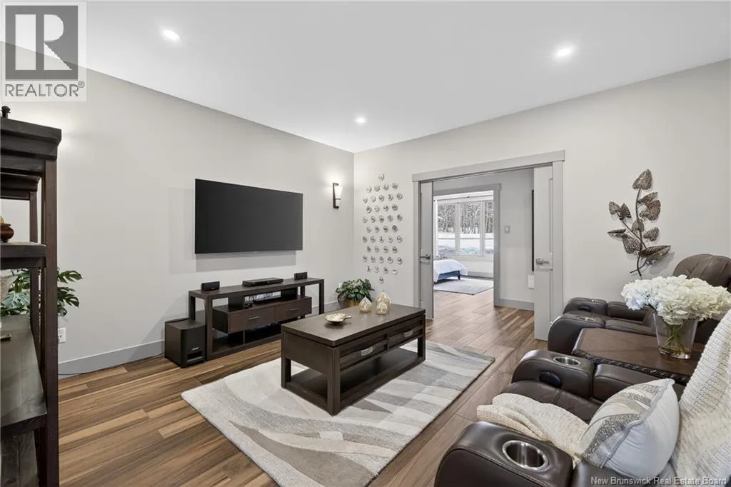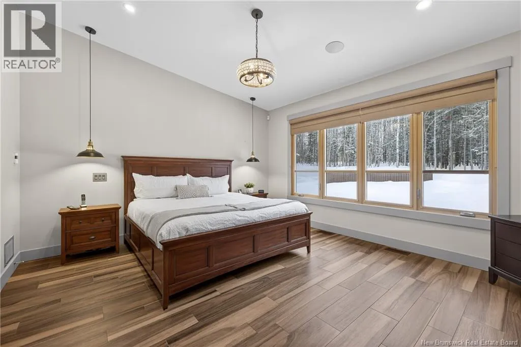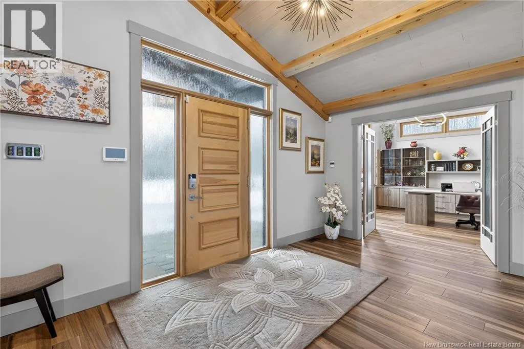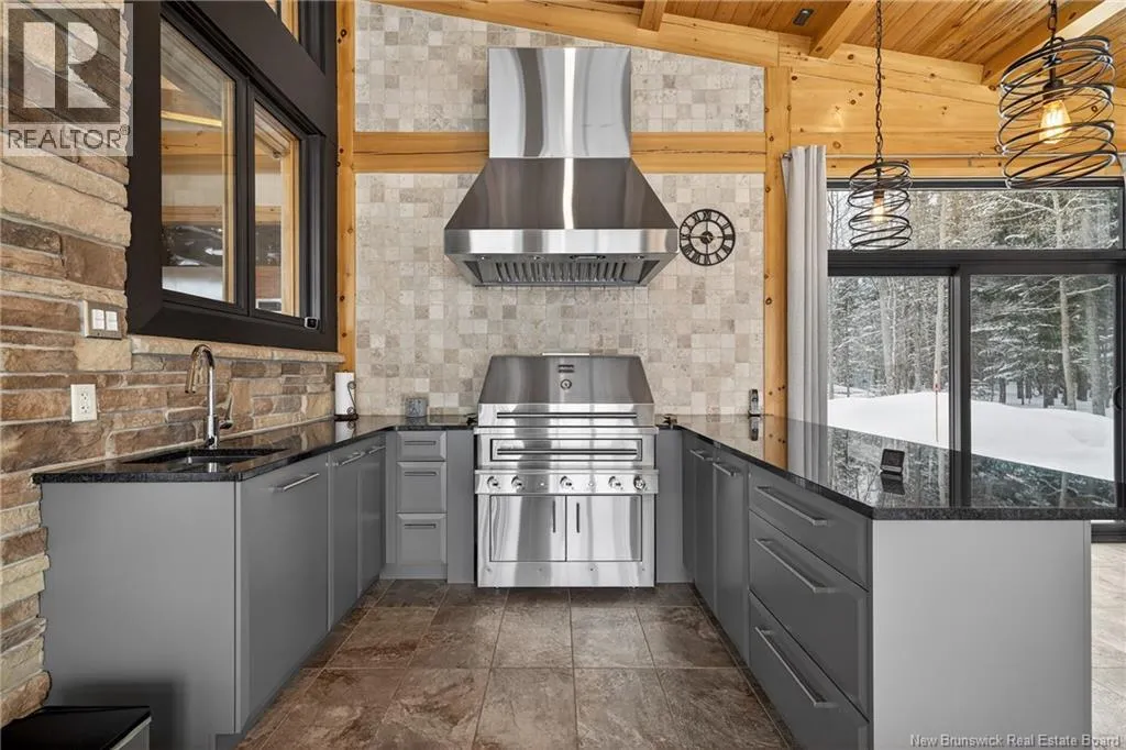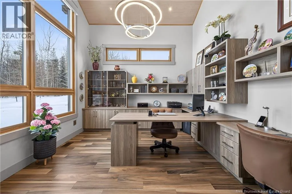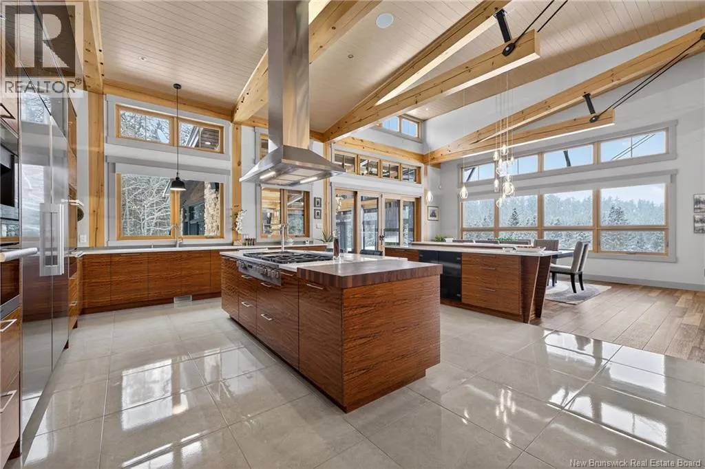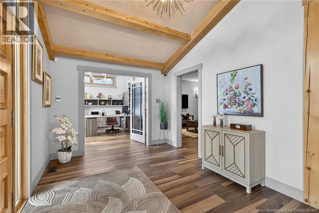 From Tracadie or Bathurst, turn onto Route 160, drive for about twenty minutes, from Bathurst the house will be on your right and from Tracadie the house will be on your left. Set on 20 private wooded acres, this exceptional residence offers remarkable privacy and rare tranquility. Timber frame construction with a soaring 23-foot cathedral ceiling and massive exposed beams creates a warm and inviting atmosphere, ideal for entertaining. The open-concept layout seamlessly connects the kitchen, dining, and living areas around a striking stone accent wall and central fireplace, while three fireplaces in total provide added comfort and a cozy ambiance throughout the winter months. The gourmet kitchen features custom solid Mozambique wood cabinetry, three generous islands, quartz countertops, an integrated butcher block, and premium Miele and Marvel appliances. Two full bedroom suites each include a private bathroom with a freestanding soaking tub and glass-enclosed shower. A spacious office supports working from home, and a dedicated home theatre room offers the perfect retreat for relaxation. The four-season veranda extends the living space year-round, ideal for gathering around the built-in barbecue and enjoying memorable moments. Radiant heated floors throughout the residence, Control4 smart home system, motorized blinds, security cameras, fibre optic internet, 22 kW automatic propane generator, and 400 AMP electrical service complete this rare estate where comfort, technology, and quality of life come together. (id:27476)