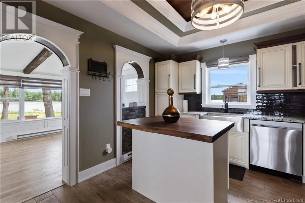 Driving on NB-115 N, continue on NB-525 N,turn right to stay on NB-525, turn left on NB-515 W (signs for Saint-Paul) Destination will be on the left WATERFRONT RETREAT WITH GUEST HOUSE YEAR-ROUND LIVING ON THE BOUCTOUCHE RIVER Welcome to your ideal riverside escape in Sainte-Marie-de-Kent. Set on 275 feet of peaceful waterfront along the Bouctouche River, this fully landscaped property offers exceptional privacy, natural beauty, and comfort in all seasons. The extensively renovated main house features 6 spacious bedrooms, 3 full bathrooms (including one with a whirlpool tub), and an oversized attached garage. You'll love the black walnut cabinetry, granite countertops, farmhouse sink, and cozy propane fireplace. Two mini-split heat pumps ensure comfort year-round. A detached 2-bedroom guest house offers a perfect setup for extended family, guests, or future rental potential. It includes a modern 3-piece bathroom, laundry area, and a covered deck with water viewsideal for relaxing or entertaining. Each building has its own electrical panel for convenience and efficiency. There is also a 150' dock that is not installed but comes with the property. New concrete walkways wind through the landscaped grounds, connecting both structures to a generous 36' x 16' deck. Located just minutes from Bouctouche, Sainte-Antoine, and Costco, this rare waterfront property blends tranquility and practicality for year-round living or multi-generational use. Never flooded, beautifully maintainedthis is a true gem. (id:27476)