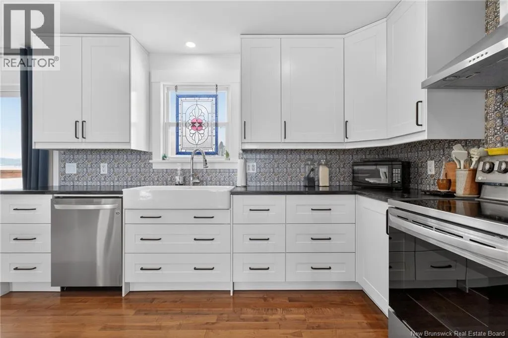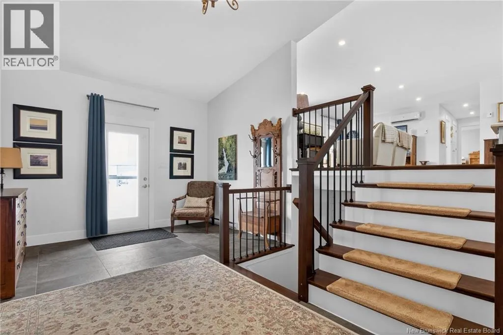 Gorge rd turn right onto Ammon rd, turn left onto NB 490N, Turn left onto NB 515E, home is on the left just before the Esso Modern, functional, and beautifully spacious. This fully updated home offers the perfect blend of comfort and style, all set against picturesque river views. The main floor welcomes you with a generous foyer, offering plenty of room for busy family arrivals from the double garage or guests coming through the front door. Youll also find a convenient laundry room and walk-in closet right off the entry, because everyday living should be easy. The open-concept kitchen, dining, and living area is the true heart of the home, designed for gathering and entertaining. Step out to the rear deck for summer BBQs or unwind on the front deck while taking in the stunning river views. Down the hall, youll find a full family bath and three well-sized bedrooms, including a spacious primary suite complete with a walk-in closet and full ensuite. The fully finished lower level adds even more room to grow, featuring a large family/games room with a cozy propane stove, two additional bedrooms, a half bath, and a generous storage area. With mini-splits on both levels for year-round comfort and generator-ready wiring for peace of mind, this home checks all the boxes. Updated, move-in ready, and thoughtfully designed. Its the kind of place you can settle into and truly call your forever family home (id:27476)