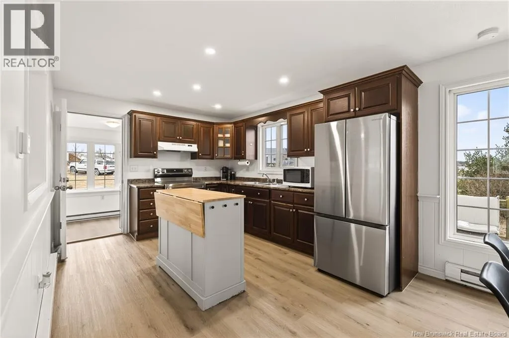 Head northwest on NB-11 North for about 1.7 km, then take exit 32B toward NB-515 West for Sainte-Marie. Merge onto Boulevard Irving/NB-515 West and continue along NB-515 Westthe destination will be on your right. Welcome to 2246 Route 515 in Saint-Marie-de-Kent! This well-maintained bungalow offers versatile living with a fully finished walkout basement and in-law suiteideal for extended family or income potential. The main level features hardwood and laminate flooring, vinyl windows, and a bright layout. The kitchen/dining area includes dark cabinetry, laminate countertops, island, double sink, and stainless steel appliances. The living room offers an electric fireplace and mini-split heat pump for year-round comfort. There are three bedrooms on the main floor, plus a 4-piece bathroom with linen storage, light cabinetry, and ceiling fan. The entrance/mudroom adds convenience with washer and dryer. The walkout basement in-law suite has its own entrance, laminate flooring, kitchen/dining area with dark cabinets and white appliances, living room, primary bedroom with double closet, two non-conforming bedrooms, a 4-piece bathroom, and stackable washer/dryer. A mini-split heat pump adds comfort. Step outside to a brand-new backyard deck overlooking a generous 0.81-acre lot. Contact your REALTOR® today to schedule your private showing! (id:27476)