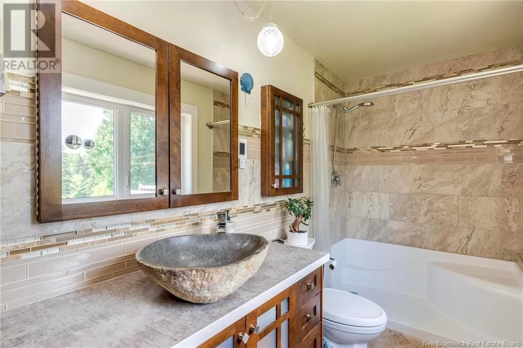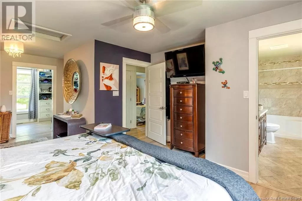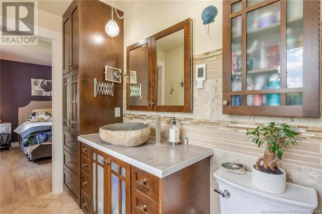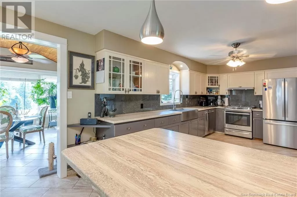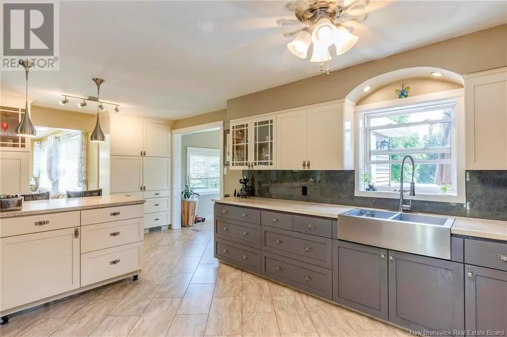 From Salisbury travel southeast on Route 112 (also known as River Road/Coverdale Road) for 2 kilometres then turn onto Mollins Road for 3 kilometres, and 295 Mollins Road will be on the righthand side! Fed up with homes that look great in photos but disappoint in person? Looking for a move-in-ready property without a long list of repairs? Your search ends here! Welcome to 295 Mollins Road, a beautifully maintained riverfront home in Colpitts Settlement. This turnkey 4 bed, 3 bath raised ranch is sure to impress! Inside, a spacious foyer leads to an open kitchen with an eat-in area, stainless steel gas stove, large fridge, dishwasher, soft-close cabinetry, sleek countertops, and a unique Italian tile backsplash. Behind the kitchen is a bright sunroom/dining area with access to the backyard. The upper level also features a spacious living room with a stunning fireplace. A catwalk above the garage hosts the laundry and storage area, and leads to a cozy office plus a large bonus room, perfect for a gym, hobby space, etc... On the other side of the home is a 4pc bath, large bedroom, and the pièce de résistance: the generous primary bedroom, complete with a 3pc ensuite and a walk-in closet the size of a bedroom, fully outfitted with sturdy custom shelving. The lower level includes a large family room with walkout to a 3 level composite deck, 2 bedrooms with built-in closets, a beautiful 3pc bath with Italian tile, and an unfinished storage/workshop area. Outside youll notice an array of beauty, raised flower beds, fruit trees, river views, storage shed, circular driveway, and incredible privacy from mature trees. Dont wait, call your REALTOR® to book your showing today! (id:27476)