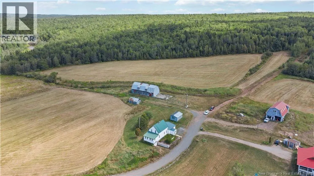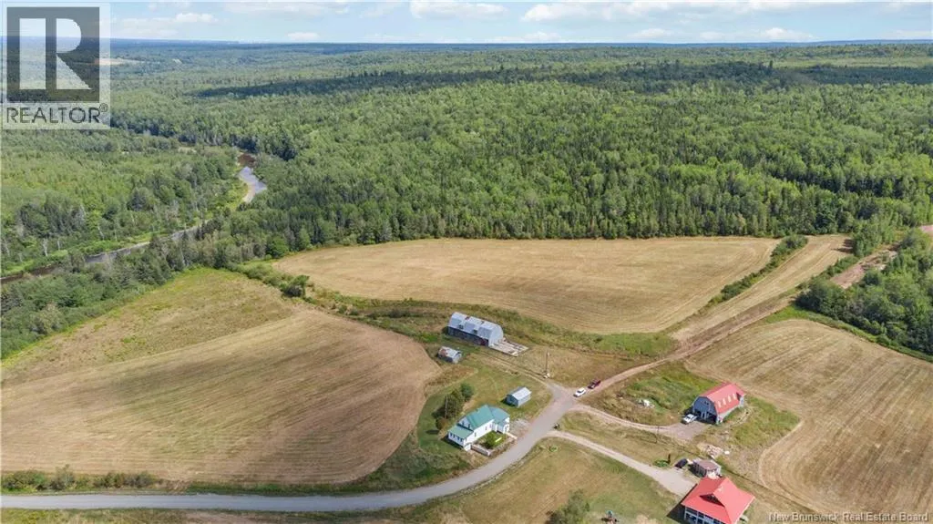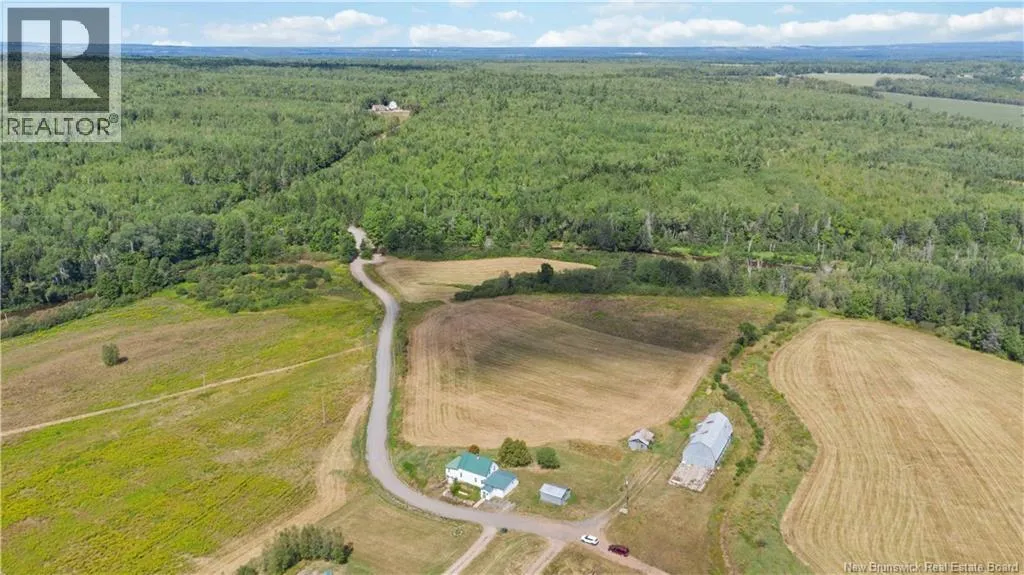 Approximately 25 Minutes from Moncton. From Riverview drive out the Coverdale Rd, turn left on Turtle Creek Rd. Drive app 11km to Nixon Rd, Right on Nixon Route for about 7.5 Km, Turn left on Route 895, drive for app 3.8km take left onto John Hopper Rd. House is on the left. Just over 220 acres of rural beauty offering 190 acres of mature woodlot and 37 acres of hayfields. A large stretch of the property borders the Little River , where you can swim, fish, or kayak right from your land. The farmhouse renovated in the 1980's,welcomes you with a spacious foyer that could make a great mudroom. On the main level you will find a bedroom or office, full bath with laundry, a bright kitchen with plenty of cupboards and counter space, a cozy living room and a front family room filled with natural light. Upstairs offers two bedrooms and a 3 piece bath. The basement is unfinished, providing excellent storage. Heat is supplied by a propane furnace with electric baseboards in the bathrooms. This home has a durable metal roof. Two outbuildings provide extra storage plus a large older barn ready for restoration. The property also offers access to nearby walking trails for walking, biking and year round outdoor enjoyment. Just 15 minutes to Salisbury and 30 minutes to Moncton, this is country living with modern convenience. Property is zoned Agriculture (A)ZONE which allows many uses. For specific questions on what is allowed in this zone feel free to reach out to PLAN 360-Southeast Regional Service Commission 506-382-5386. This is a rare find so close to Moncton. Questions, give your favorite Realtor a Call! (id:27476)