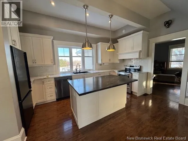 On the Fredericton road just minutes off Main street Discover this beautifully remodeled 4-bedroom home, just 15 minutes from the city. This spacious residence offers a perfect blend of comfort and modern elegance, making it ideal for families and professionals alike & the house sits on over half an acre itself with more behind it . The main floor boasts exquisite trey ceilings in the living room, adding a touch of sophistication and features a versatile study that can easily be used as a fifth bedroom. Enjoy the convenience of a luxurious primary suite on the second level, complete with an ensuite bathroom, laundry facilities, and a walk-in closet. The second floor also offers two more bedrooms and a 3-piece bath. The private third level includes an additional spacious bedroom and an expansive family room, perfect for entertaining or relaxing. This home provides plenty of space for your family to grow while still being close to all the amenities and attractions of city life. Dont miss out on this incredible opportunity! Only a couple of minutes to the 4 lane hwy #1 , walking distance with sidewalk to school & the downtown core. School bus pick up available here. Quick 2 minute access to the groomed trail system. Must be seen to be appreciated , this home is in fantastic condition & has been well maintained. Comes with an extra over 3 acres of field behinde the house on a different PID. (id:27476)