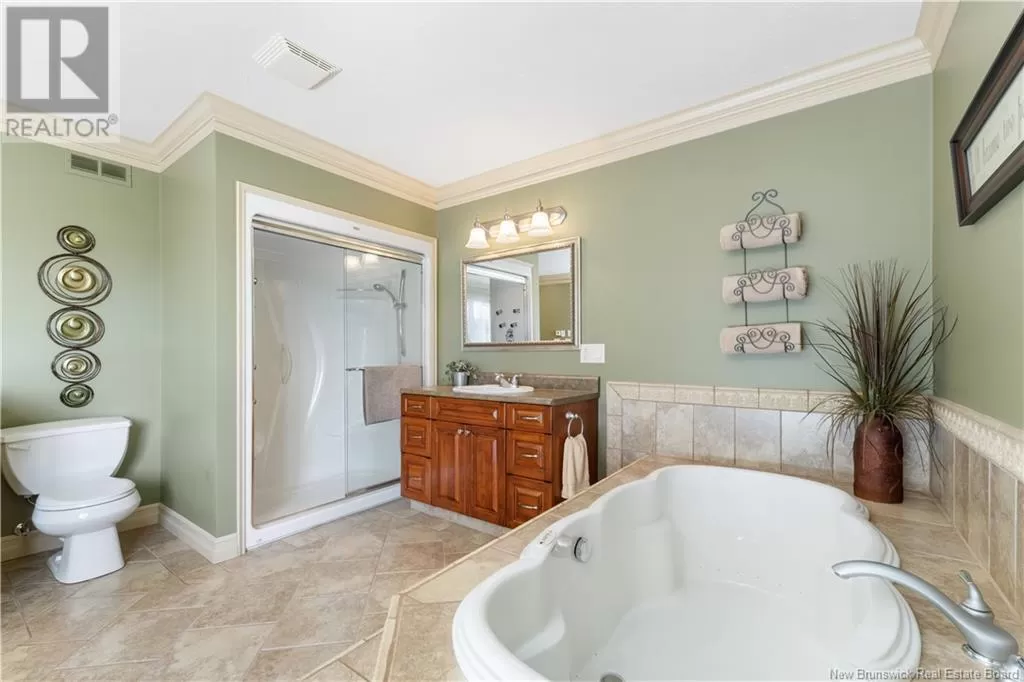 Take NB-132 E. OPEN-CONCEPT / HEATED FLOOR / 3.2 ACRES / IMMACULATE / Welcome / Bienvenue to 3042 Route 132. The perfect property for those seeking the tranquility of country living with the convenience of being just minutes from the city. This immaculate, pride-of-ownership home is nestled on a beautifully landscaped 3.2-ACRE LOT. Step inside to a SPACIOUS, OPEN-CONCEPT main floor featuring a large kitchen and bright living room, perfect for family gatherings and entertaining. The main level also offers a generous primary bedroom complete with an open-concept ensuite bath and a walk-in closet. A second bedroom is also located on this floor, along with a half bath and laundry area. Across the home, you'll find a third (non-conforming) bedroom and access to a STUNNING DOUBLE CAR GARAGE with HEATED EPOXY FLOORING. The ENTIRE MAIN FLOOR has IN-FLOOR HEAT with a hot water boiler system, built on an overpour of concrete for excellent soundproofing. A mini-split heat pump adds year-round comfort. The fully finished basement is ideal for entertaining, featuring a spacious living area, two additional bedrooms, a 4-PC bath, a cold room, and ample storage. Outside, enjoy a private backyard oasis with a lovely deck, a detached garage, and beautiful brick landscaping. Located just 10 minutes from Dieppe and Shediac with quick highway access, this property truly offers the best of both worlds. Dont miss your chance to make this stunning home yours! Call your REALTOR® today! (id:27476)