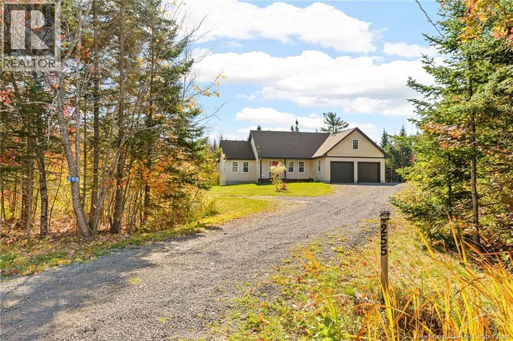 From Route 132 in Scoudouc, turn onto Malakoff Road. The house will be on your right. Welcome to 255 Malakoff in Scoudouc, a stunning Chris Franklin built bungalow that beautifully balances craftsmanship, warmth, and modern living. Tucked away on a private, 1 acre treed lot. This home offers the perfect retreat while still being just a short drive from city convenience. 15 mins from shediac, 17 mins from Moncton. Inside, youll find an inviting open-concept layout with vaulted ceilings and oversized windows that fill the home with natural light. The living rooms impressive stone propane fireplace adds rustic charm, while the stylish kitchen features white cabinetry, stainless steel appliances and a large butcher block island perfect for cooking, entertaining, or gathering with family. The main level also includes a spacious primary bedroom complete with a private ensuite and walk in closet, plus a convenient half bath for guests, main-level laundry, and a mudroom with direct access from the attached double garage. The fully finished basement provides even more living space with two additional bedrooms, a full bathroom, and a comfortable family room ideal for a home office, media room, or teen hangout. Step outside to your private backyard paradise featuring a heated above-ground pool and a large deck surrounded by trees the ultimate space for relaxing or entertaining. With ample parking, beautiful design, and the exceptional quality that comes with a qality built home. Call today for more info or for your private viewing. (id:27476)