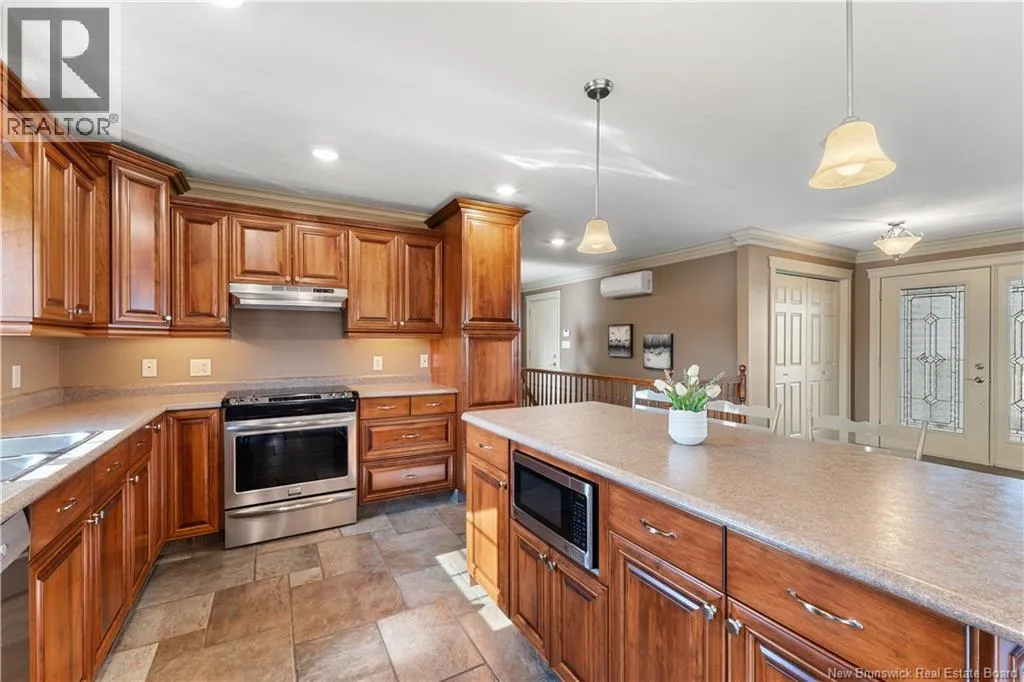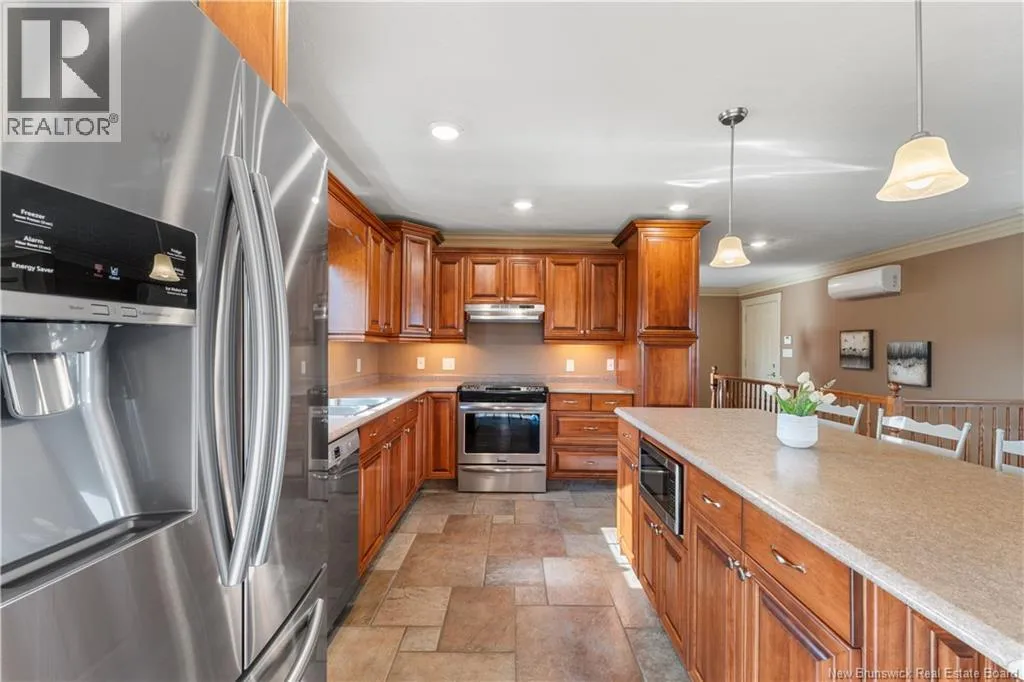 Take NB-132 E. OPEN-CONCEPT / HEATED FLOOR / 3.2 ACRES / IMMACULATE / Welcome / Bienvenue to 3042 Route 132. The perfect property for those seeking the tranquility of country living with the convenience of being just minutes from the city. This immaculate, pride-of-ownership home is nestled on a beautifully landscaped 3.2-ACRE LOT. Step inside to a SPACIOUS, OPEN-CONCEPT main floor featuring a large kitchen and bright living room, perfect for family gatherings and entertaining. The main level also offers a generous primary bedroom complete with an open-concept ensuite bath and a walk-in closet. A second bedroom is also located on this floor, along with a half bath and laundry area. Across the home, you'll find a third (non-conforming) bedroom and access to a STUNNING DOUBLE CAR GARAGE with HEATED EPOXY FLOORING. The ENTIRE MAIN FLOOR has IN-FLOOR HEAT with a hot water boiler system, built on an overpour of concrete for excellent soundproofing. A mini-split heat pump adds year-round comfort. The fully finished basement is ideal for entertaining, featuring a spacious living area, two additional bedrooms, a 4-PC bath, a cold room, and ample storage. Outside, enjoy a private backyard oasis with a lovely deck, a detached garage, and beautiful brick landscaping. Located just 10 minutes from Dieppe and Shediac with quick highway access, this property truly offers the best of both worlds. Dont miss your chance to make this stunning home yours! Call your REALTOR® today! (id:27476)