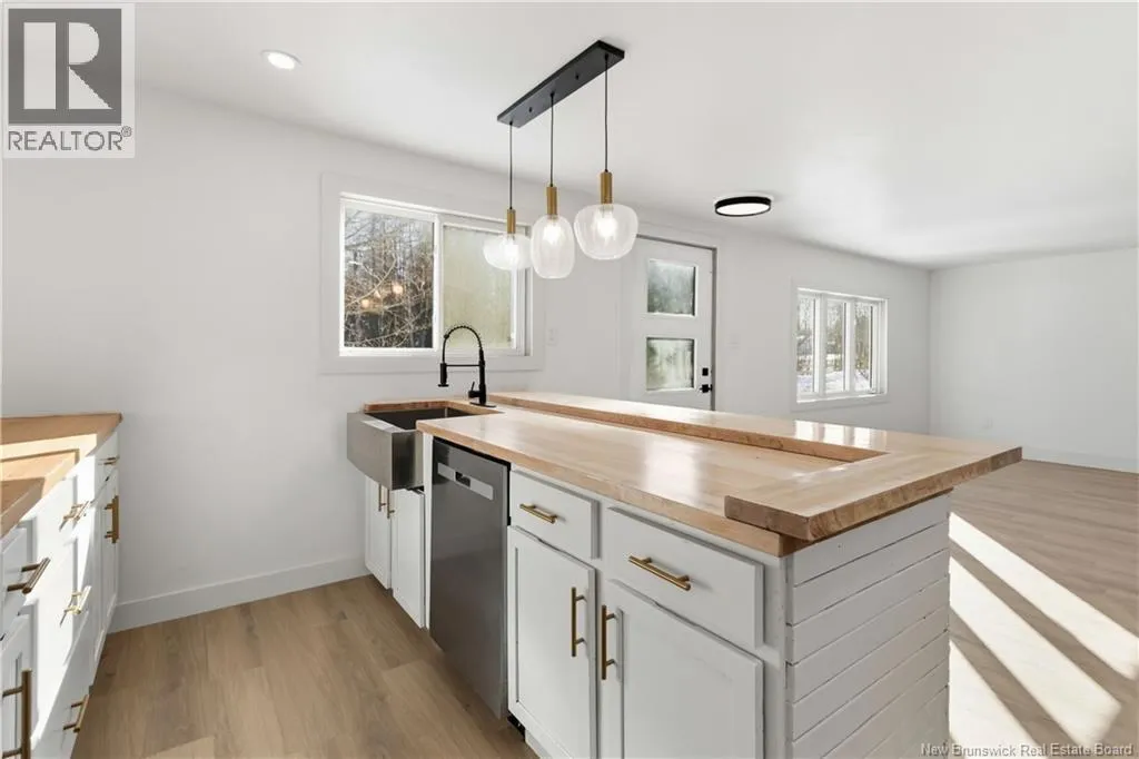 NB-132 W, turn left onto scoudouc river rd. house is on the left. Welcome to this beautifully renovated home offering modern updates and flexible living space. Completely remodeled in 2022, the property has undergone extensive upgrades including new plumbing, electrical, roof, spray foam insulation, updated electric baseboard heating, and a ductless mini-split heat pump for efficient year-round comfort. The main level features a bright open-concept layout connecting the kitchen (with a lovely pantry), dining, and living areas perfect for both everyday living and entertaining. The updated kitchen includes new appliances, modern finishes, and plenty of functionality. This level also offers one bedroom and a stylishly renovated 4-piece bathroom. The fully finished basement expands the living space significantly, featuring four bedrooms, a large rec room, and a 2-piece bathroom (toilet to be installed) ideal for larger families, guests, or flexible living arrangements. Another standout feature is the garage space, which is approximately 50% completed toward a potential in-law suite. Buyers have the flexibility to finish the space as an in-law suite or convert it back into a traditional garage, depending on their needs. Outside, new decks provide a great space to relax or entertain. With major upgrades completed within the last 24 years, this move-in ready home offers the perfect combination of modern renovations, efficiency, and versatility. (id:27476)