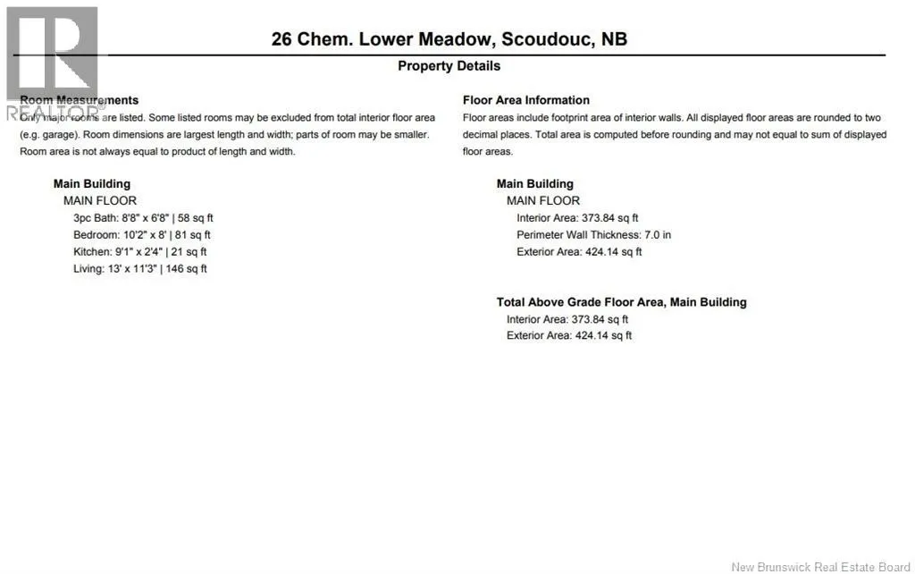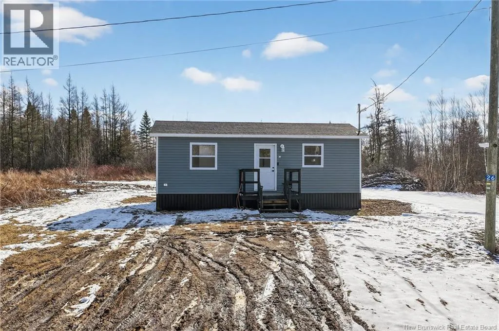 From Champlain Rd continue to follow NB-132 E towards Scoudouc, turn right on Malakoff Rd, Turn right onto Chem. Lower Meadow, destination is on your left. Welcome to 26 Lower Meadow Street in Scoudouc a newly built, thoughtfully designed tiny home set on 1.37 acres of peaceful countryside. Built in 2025, this 420 sq ft home offers efficient, low-maintenance living without sacrificing comfort or style. The open-concept layout features a bright living room, dining area, and a well-designed kitchen complete with fridge and stove, maximizing every square foot. The home also offers a cozy bedroom and a 3-piece bathroom, making it an ideal option for those looking to simplify their lifestyle, invest, or enter the market. Heating is provided by electric baseboards, complemented by a ductless mini-split for year-round comfort and energy efficiency. Set on a generous 1.37-acre lot, this property offers privacy, space, and exceptional positioning as the last home before the trails, youll enjoy direct access to recreational trails right from your backyard. Perfectly located just 10 minutes from both Moncton and Shediac, youll have quick access to all amenities while being moments away from some of the areas most beautiful beaches. If youve been searching for affordable, modern living with added outdoor lifestyle appeal, this property is a must see. (id:27476)