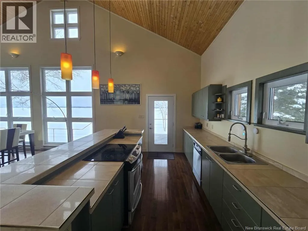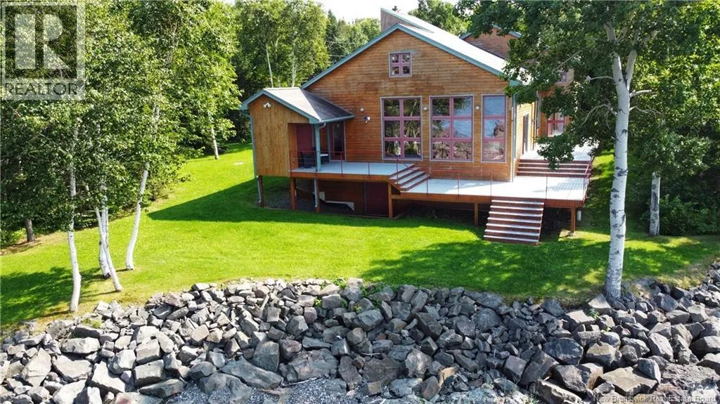 Route 134, right on McNeil, Right on Island View Lane Set on 3.7 acres of exceptionally private oceanfront land, this custom-built residence is a rare coastal retreat offering panoramic views of the ocean, Heron Island, and the Appalachian Mountains. A long, treed driveway welcomes you into this secluded oasis where natural beauty and thoughtful design come together. The striking exterior is complemented by a detached three-door garage and an expansive wraparound deck perfect for relaxing and taking in the waterfront surroundings. Inside, soaring cedar ceilings and oversized windows flood the home with natural light, framing spectacular water and mountain views from nearly every room. The main level features a bright open-concept kitchen, dining, and living area ideal for everyday living and entertaining. A pantry with laundry, two-piece bath, and spacious primary bedroom complete this level. The primary suite offers a walk-in closet, private ensuite, and patio doors leading to the wraparound deckperfect for morning coffee by the waves. A loft overlooks the main floor, enhancing the homes open feel. Two additional bedrooms share a full bath for family or guests. The unfinished walkout basement offers endless possibilitieshome gym, media room, guest suite, or added living space. Heated and cooled with a geothermal heat pump, this beachfront property blends sustainability, privacy, and timeless design in a stunning coastal setting. (id:27476)