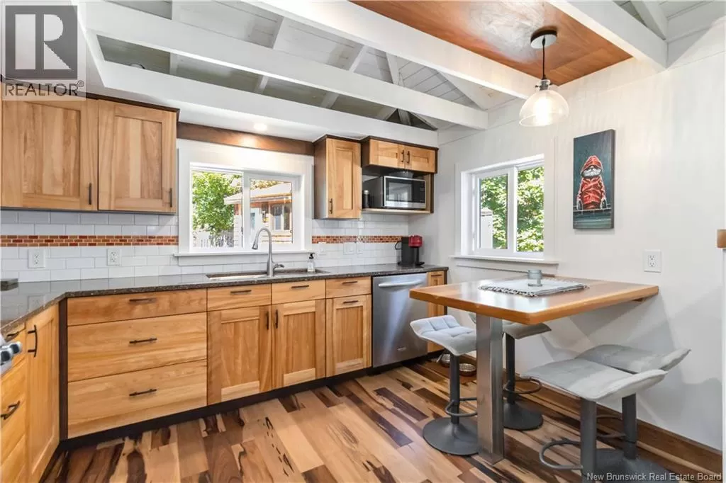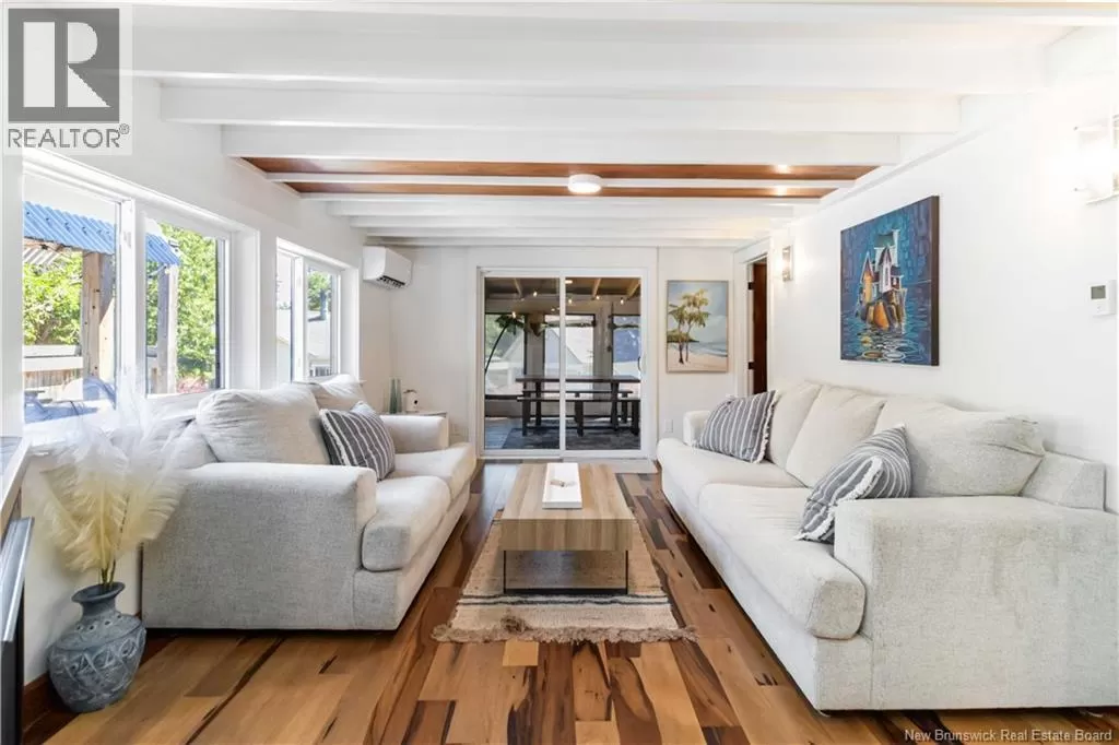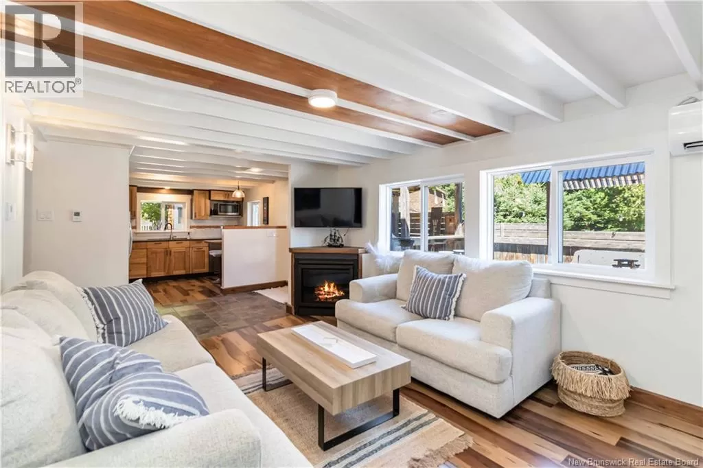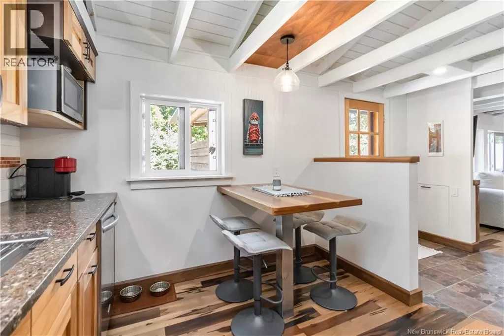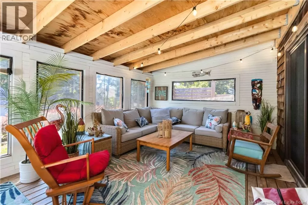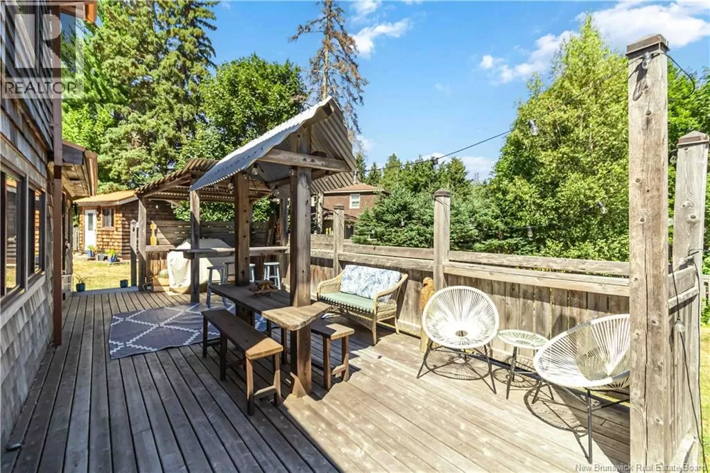 From Highway 133 turn on Edgewater and right onto James St. 14 James will be on your left. 14 James Street in Shediac Bridge offers the perfect blend of comfort, style and location. Just minutes to Shediac amenities and 20 minutes to Moncton with easy highway access, this YEAR-ROUND home features water access and extensive upgrades including imported hardwood flooring, Quartz countertops in kitchen as well as a pull out pantry system, spice, cupboards, built in table! There is a copper-coloured metal roof with matching upgraded gutters, architectural ceilings, full cedar shingle exterior, in floor radiant heat, custom blinds and fresh paint. Designed for SINGLE-LEVEL LIVING, the main floor offers 2 bedrooms, main floor laundry, a living room with propane insert, and a spacious 3-season 12x24 sunroom added in 2024. The approx 12x24 loft includes 2 double beds with plenty of room for guests or potential use as a primary suite or family room. Additional highlights include an enclosed cedar porch with built in storage and a place to put your feet up and read a book. A large deck with built-in bar and table expands your outdoor living space. A second deck on the opposite side lets you follow the sun all day long! The wired cedar shed that could serve as a bunkhouse. The 2 mini splits and in floor radiant heat allow for year round comfort Surrounded by mature trees for privacy, in a neighbourhood of year-round residents, this property is ideal as a full-time home, cottage, rental or Airbnb. Please contact your REALTOR® to schedule your visit to this property (id:27476)