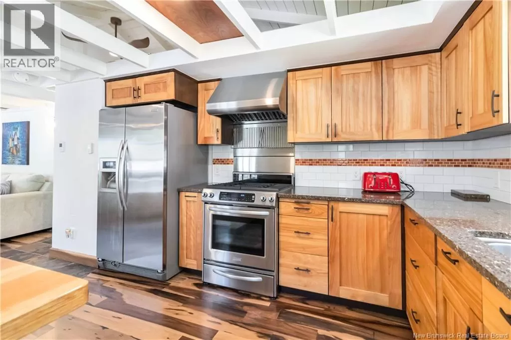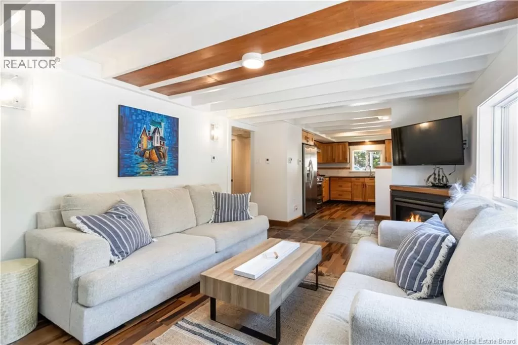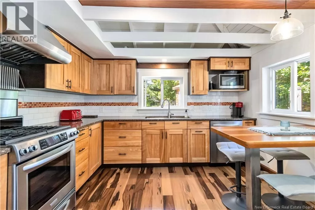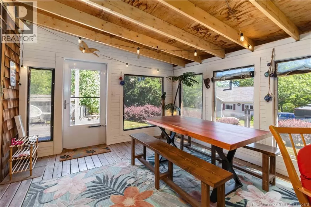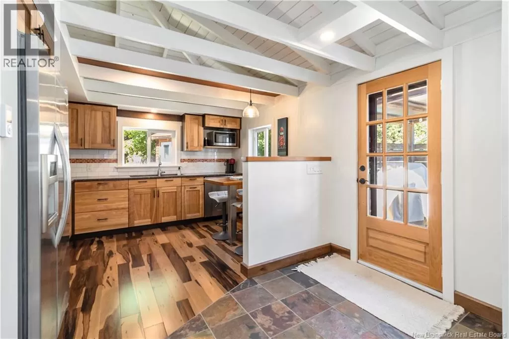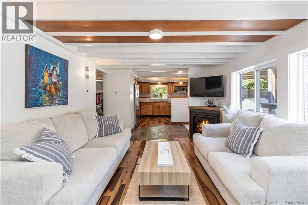 From Highway 133 turn on Edgewater and right onto James St. 14 James will be on your left. 14 James Street in Shediac Bridge offers the perfect blend of comfort, style and location. Just minutes to Shediac amenities and 20 minutes to Moncton with easy highway access, this YEAR-ROUND home features water access and extensive upgrades including imported hardwood flooring, Quartz countertops in kitchen as well as a pull out pantry system, spice, cupboards, built in table! There is a copper-coloured metal roof with matching upgraded gutters, architectural ceilings, full cedar shingle exterior, in floor radiant heat, custom blinds and fresh paint. Designed for SINGLE-LEVEL LIVING, the main floor offers 2 bedrooms, main floor laundry, a living room with propane insert, and a spacious 3-season 12x24 sunroom added in 2024. The approx 12x24 loft includes 2 double beds with plenty of room for guests or potential use as a primary suite or family room. Additional highlights include an enclosed cedar porch with built in storage and a place to put your feet up and read a book. A large deck with built-in bar and table expands your outdoor living space. A second deck on the opposite side lets you follow the sun all day long! The wired cedar shed that could serve as a bunkhouse. The 2 mini splits and in floor radiant heat allow for year round comfort Surrounded by mature trees for privacy, in a neighbourhood of year-round residents, this property is ideal as a full-time home, cottage, rental or Airbnb. Please contact your REALTOR® to schedule your visit to this property (id:27476)