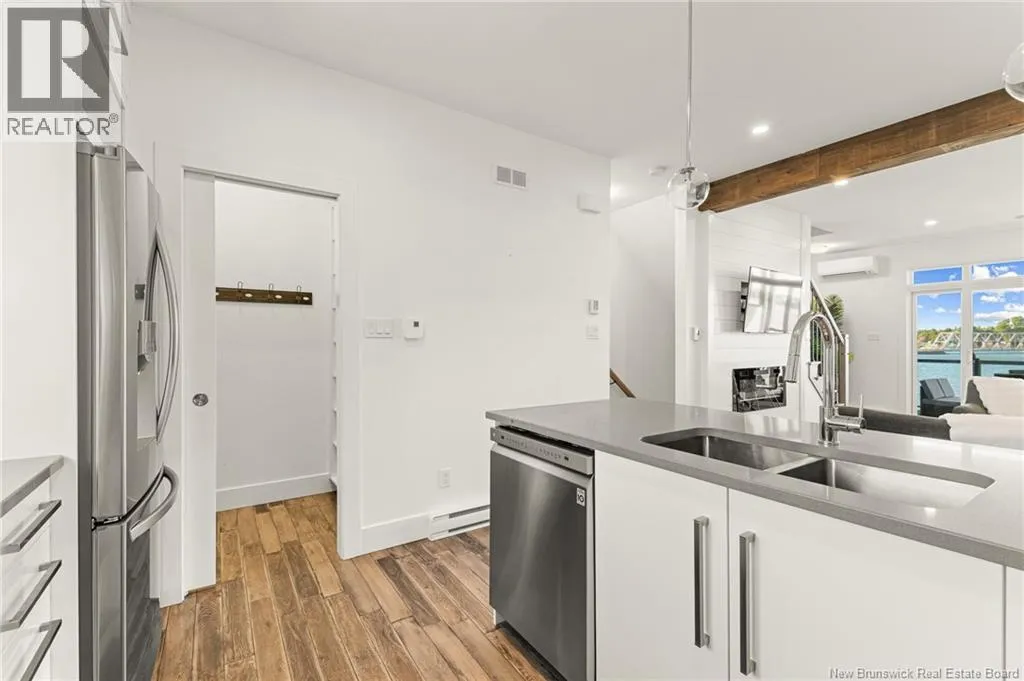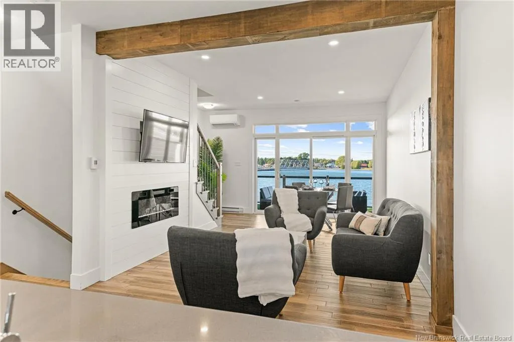 Exit 7 off Hwy 11, right at the stop, all the way to Route 134. Take a right, cross the bridge and condo access will be to your left after the bridge, one way parking/driveway. *** QUICK CLOSING AVAILABLE // WATERFRONT CONDO TOWNHOME // 3 STOREY WITH CONCRETE BALCONIES OVERLOOKING WATER ON EACH LEVEL // PRIVATE BOATING DOCK ON SITE // MAINTENANCE FREE LIVING *** Welcome to 3808 Rte 134 Unit #123 in beautiful Shediac Bridge! This pristine unit is move-in ready for its new lucky owners! Park your car in the attached garage and enter into the spacious foyer. Here, you have access to the 1st level patio with LOVELY WATER VIEW - it would be a perfect spot to add a hot tub. Ascend the hardwood staircase to find a 2pc bathroom and STUNNING OPEN CONCEPT kitchen/living/dining combination highlighted by QUARTZ COUNTERTOPS, WALK-IN PANTRY, WOODEN BEAM, SHIPLAP accent wall with electric fireplace, and access to the 2nd balcony with more amazing views. Up the 2nd staircase to the top floor, you will find a beautiful 4pc bathroom, laundry closet, guest bedroom, and amazing primary bedroom with WALK-IN CLOSET as well as another closet, MASSIVE WINDOWS, and 3rd balcony with the best views. Both these top floor bedrooms have HIGH CEILINGS. For an additional maintenance fee, you will have access to the community boating dock. The condo fee of $385/month covers landscaping, snow removal, water/sewer, and exterior building maintenance. This unit has MANY ADDITIONAL FEATURES, SUCH AS: in-floor heat on entire 2nd floor, 2 mini-split heat pumps, and central vacuum. Dont miss your chance to own this dream waterfront property where everyday feels like a vacation! (id:27476)