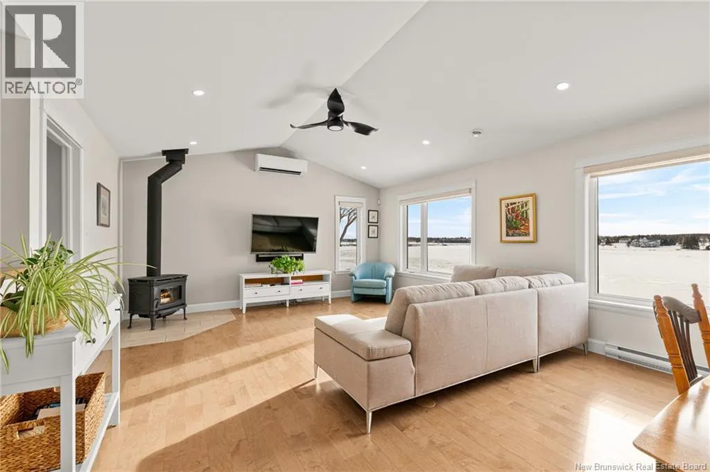 From Shediac Rte 134 north past bridge in Shediac Bridge and first left onto WD Fougere. *** BEAUTIFUL WATERFRONT SPLIT-STYLE HOME WITH WALK-OUT BASEMENT AND AMAZING VIEWS // SOUTHERN EXPOSURE FOR ALL DAY NATURAL SUNLIGHT // ATTACHED DOUBLE GARAGE *** Welcome to 49 WD Fougere in beautiful Shediac Bridge! This 2019-built home with attached double garage and walk-out basement, is perfectly positioned on the channel for stunning sunrises and views of both bridges. The south-facing orientation fills the home with natural light and heat throughout the day. The upper level features a MINI-SPLIT for heating/cooling comfort and an OPEN CONCEPT LAYOUT with CATHEDRAL CEILING, BIRCH HARDWOOD floors, and living room highlighted by a cozy WOOD STOVE. The kitchen offering a TRAY CEILING, STYLISH BACKSPLASH, and ISLAND, flows into the dining area with access to a beautiful 4-SEASON SUNROOM finished in CEDAR and OVERLOOKING THE WATER. A 3pc bath with large walk-in shower and 2 bedrooms are located on this level, including the primary bedroom with 2 closets. The WALK-OUT LOWER LEVEL offers a ANOTHER MINI-SPLIT, bright family room, 3rd bedroom, 4pc bathroom, laundry, and generous storage space including a large coat closet with additional space behind. This well-maintained home and exceptional waterfront property also offers a mechanical room off the garage featuring a water system and UV light, rock breakwater wall, and generator-ready setup. There is so much to offer its lucky new owners! (id:27476)