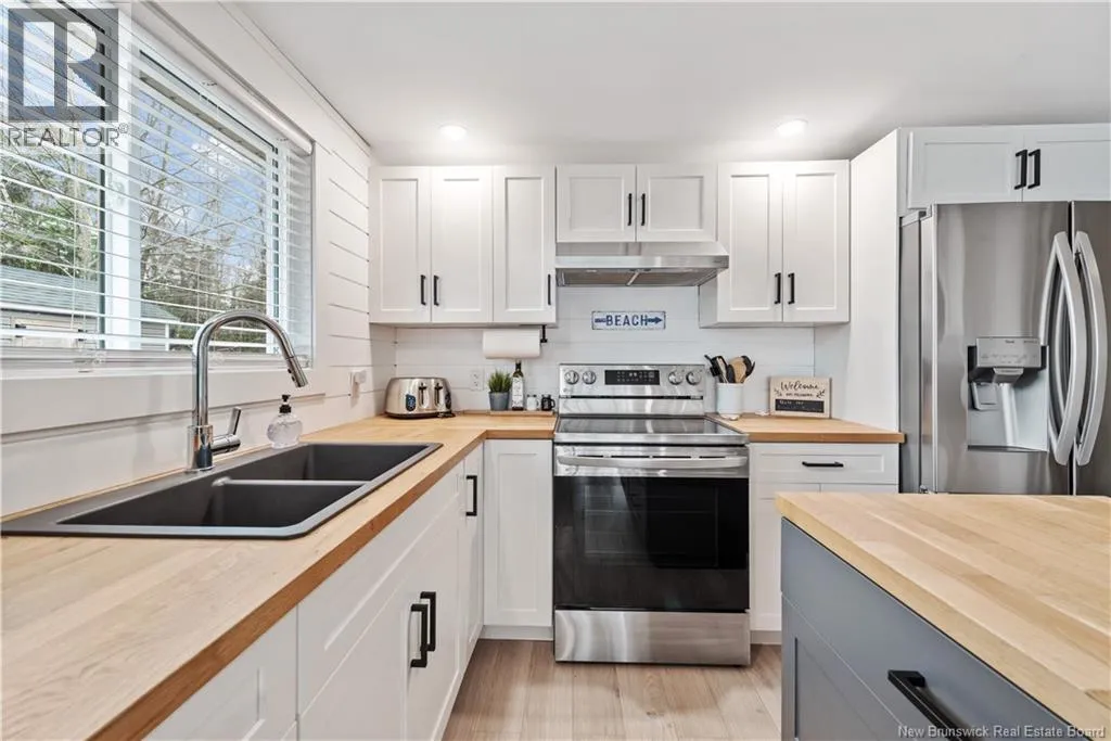 GPS may direct you to the funeral home down the road from Kelly Lane when you search the property, please note this is not the correct location. Continue past the funeral home and proceed onto the next street, Léandre Street. From there, take the first right after the first property on your right. Continue straight to the end of the road, the property is last one and is identified as 4 Kelly Lane. This unique property has ocean views, a quiet beach nearby, and a fully renovated cottage with a separate detached guest home and out OUTDOOR shower! Completely redone in 2022, so youre not walking into a project and you can enjoy the weather with your friends and family. To name a few, there is a 200 amp electrical panel, brand new septic system, all new windows, Cambridge roof, and a custom 8 ft sliding door that brings so much natural light into the spaces. These homes are bright, clean, and is available fully furnished! The main cottage has an open-concept layout with two bedrooms, a full bathroom, in-unit laundry, and a comfortable living space. Everything flows well and makes it easy to relax or host. Placed in front of the main home, there is a fully detached guest house with its own bedroom, kitchenette, living area, bathroom and updated finishes. Whether its friends, family, or just having a bit of separation, its a huge bonus and gives you flexibility most properties dont have. Beach access just minutes away, an open field behind with no plans to build, and ocean views out front. Its quiet, peaceful, and exactly what people are looking for when they think coastal getaway. There are only cottage homes located on this street. The cottage sits on leasehold land at $1 on a 150-year lease term. Just minutes from Shediac, close to beaches, restaurants, and everything you need for a getaway most of your year! Please contact for more information. (id:27476)