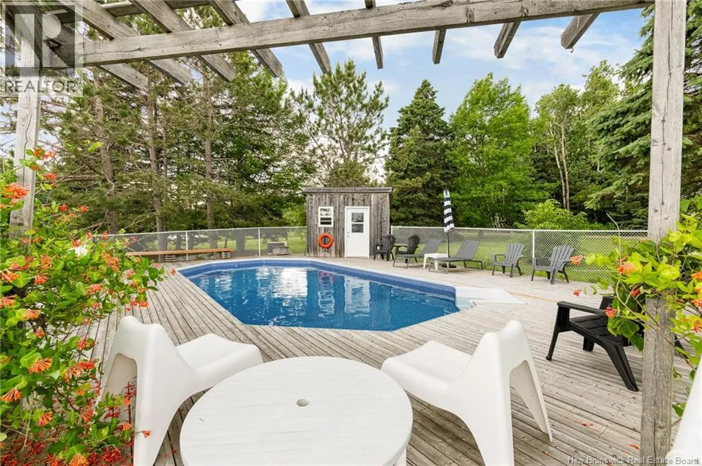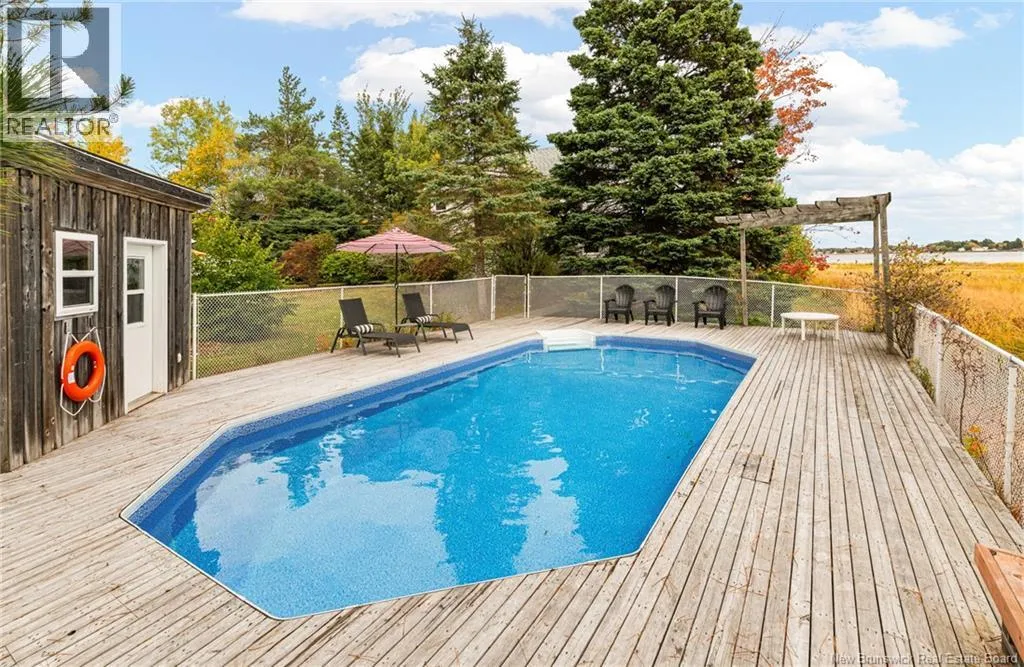 Hwy 15E to to NB-11 N exit toward Shediac. Take exit 1 toward NB-133/Shediac. Turn right onto Main St. At the roundabout, take the 2nd exit and stay on Main St. Turn left onto Hanington Rd. Turn right onto Heron Way. *** PRIVATE WATERFRONT 2 ACRE RETREAT // INCREDIBLE SURROUND VIEWS OF SHEDIAC BAY // HEATED POOL // BEACH ACCESS // VACATION RENTAL POTENTIAL *** Welcome to 48 Heron Way, a stunning waterfront wrapped retreat offering PRIVACY, PANORAMIC VIEWS of Shediac Bay, and SANDY BEACH. Perfect family home or personal getaway/vacation rental with $750/night average in peak season. Youll love the POOL and DOUBLE DETACHED GARAGE with ready-to-finish WALK-UP ATTIC. The main floor features living/dining area with CATHEDRAL CEILING, LARGE WINDOWS for spectacular views, 4 SKYLIGHTS for more natural light, MINI-SPLIT, WOOD FIREPLACE for cozy evenings, and access to a 3-SEASON SUNROOM and LARGE DECK showcasing BREATHTAKING VIEWS and perfect for relaxation. A REFACED WHITE KITCHEN with NEW COUNTERTOPS (2024) also features breakfast bar seating. A spacious bedroom includes stylish BARN DOOR, PROPANE FIREPLACE, MINI-SPLIT, and DIRECT ACCESS to the deck and sunroom. A 3pc bath, laundry, and small storage room complete the level. Upstairs, a spare bedroom and primary suite with more AMAZING VIEWS, 2 LARGE CLOSETS, MINI-SPLIT, and BALCONY share a gorgeous, updated 5pc bath with top of the line features (2024) including SOAKER TUB, CUSTOM SHOWER, DUAL QUARTZ VANITY, and FAN WITH SPEAKER. Other updates: new pool liner (2024), 2 new mini splits (2022), new metal railings outside (2021), new pump and pressure tank (2022). This one-of-a-kind haven offers full privacy with proximity to Shediacs amenities! (id:27476)