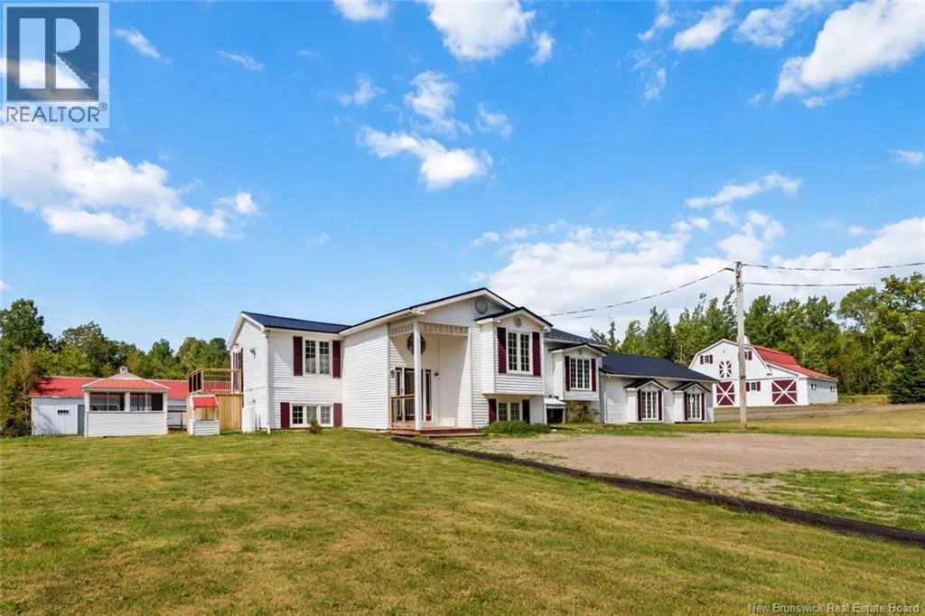 Located off Shediac Rd (NB-134) on the left side of Sawdust. Set on approximately 5 acres, this versatile country property offers space, privacy, and incredible outbuildings for hobbyists, business owners, or anyone needing serious storage. The five-bedroom home features a bright, updated kitchen, a comfortable living room with propane stove, and a lower level with a pellet stove and two mini-split heat pumps for year-round comfort. The main floor primary suite includes a newly updated ensuite with jetted tub, while the lower level provides additional flexible-use rooms for guests, office space, or hobbies. Outside, enjoy a large deck and patio area with a screened gazebo and fire pit, perfect for entertaining or relaxing in the peaceful surroundings. DOUBLE ATTACHED GARAGE + 3 DETACHED GARAGES: This property offers exceptional outbuildings that provide outstanding storage and workspace options, with potential for seasonal or winter storage income for boats, campers, and recreational vehicles. Detached building measuring approximately 40' x 100' with a 30' x 90' lean-to addition and high overhead doors ideal for large equipment and vehicle storage. Heated shop measuring approximately 28' x 55' with hoist, loft space, and a 25' x 55' lean-to addition. Third detached building measuring approximately 30' x 37' with a 12' x 37' addition, previously used for horse stalls and clean dry storage. A rare opportunity offering space, versatility, and income potential. (id:27476)