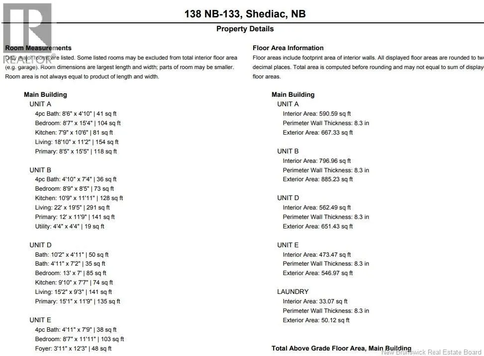 the corner building at Hannington and Grand Pre street FOURPLEX ! 5 ELECTRICAL METERS! HUGE LOT! 5 FULL BATHROOMS! METAL ROOF! Welcome to 138 Hannington Street in Shediac, a solid fourplex with strong rental income and excellent cash flow in a high-demand location. The property offers two 2-bedroom 1-bath units(UNIT A, B), one rare and spacious 2-bedroom 2-bath unit (UNIT D) with a primary bedroom ensuite and a balcony, and one 1-bedroom 1-bath unit(UNIT E), appealing to a wide tenant pool. Five electrical meters are in place - one for each unit plus a separate common-area meter for the shared laundry room, with future potential for coin-operated laundry income. Recent updates have been completed, the fourplex has a metal roof and the building sits on a large corner lot at Hannington and Grand Pre with plenty of parking and a storage shed. Located in the popular tourist town of Shediac near Point du Chene, this property is ideal for long-term tenants. Floor plans and virtual tour are attached - book your showing today. (id:27476)