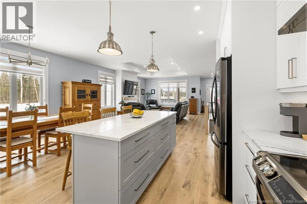 From Breaux Bridge st. Turn onto Chatelleraut, then right on Madeleine and left Guy. Modern Custom Bungalow 85 Guy Street, Shediac Welcome to this stunning 2023 custom-built bungalow offering 5 bedrooms, 3 full baths, and 3,448 sq ft of beautifully finished living space. Featuring a HEATED DOUBLE ATTACHED GARAGE plus a DETACHED GARAGEboth with smart garage door openers and built-in cameras. Step inside the spacious foyer with direct garage access. Enjoy engineered hardwood\laminate and ceramic tile flooring throughout. The inviting living room showcases a custom fireplace, flowing into the open dining area and bright kitchen with light cabinetry, solid quartz countertops, and a hidden walk-in pantry. A 3-season sunroom overlooks the backyard, while the COVERED PORCH is perfect for morning coffee. The main level includes a convenient laundry room, 3 bedroomsincluding a primary suite with walk-in closet and 3-pc ensuiteand a 4-pc family bath. The fully finished basement offers a large family room, 2 more bedrooms, and another full bath. Step outside to enjoy the PAVED DRIVEWAY, beautifully LANDSCAPED LOT, and the curb appeal that sets this property apart. Comfort features include ductless heat pump, radiant in-floor heating (in all 3 baths), electric baseboards, air exchanger, central vac, generator backup panel, and hardwired security cameras. Transferable Lux home and appliance warranties included! Contact your REALTOR® for a private showing today! (id:27476)