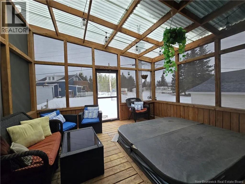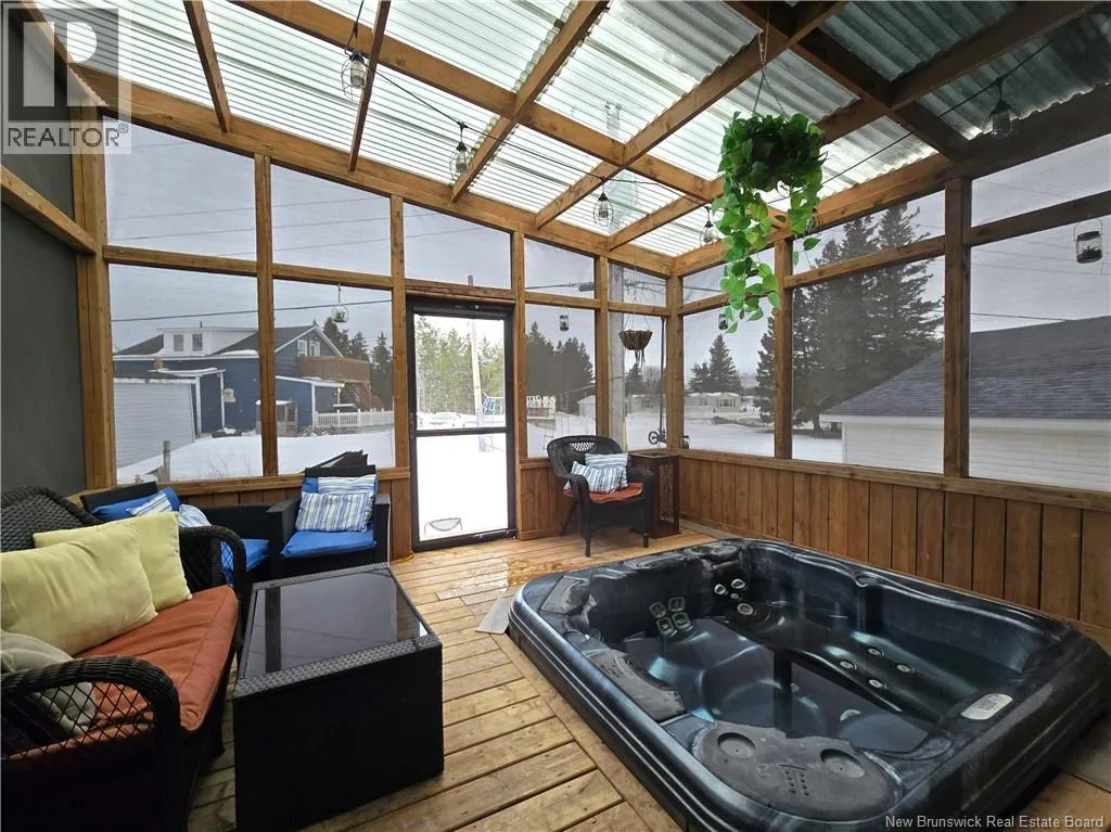 From Rue 1 turn on 2ieme rue and the house will be on your right. Modern 2018 mobile home located in the heart of Shippagan, close to the university, schools, grocery stores, convenience stores, gas stations, restaurants and cafés. This property features a bright open-concept layout combining the kitchen, dining area and living room, with large windows bringing in plenty of natural light. The kitchen offers a spacious central island perfect for cooking and entertaining. The home includes two bedrooms, a full bathroom, and a laundry area with additional storage in the hallway. The primary bedroom features a patio door leading to a large covered veranda located at the back of the home, a perfect space to relax, where you will also find a hot tub to enjoy year-round. Outside, the property also includes a detached garage and a durable metal roof. Located a short distance from the beautiful beaches of Shippagan, Lamèque, Caraquet and Tracadie, this property allows you to fully enjoy life in the Acadian Peninsula. The region is well known for its coastal scenery, fishing industry, marinas, ATV and snowmobile trails, as well as many paved and unpaved cycling trails stretching for many kilometres and connecting several communities across the area. A great opportunity for a single person, a couple or a small family looking for a comfortable home close to all amenities. (id:27476)