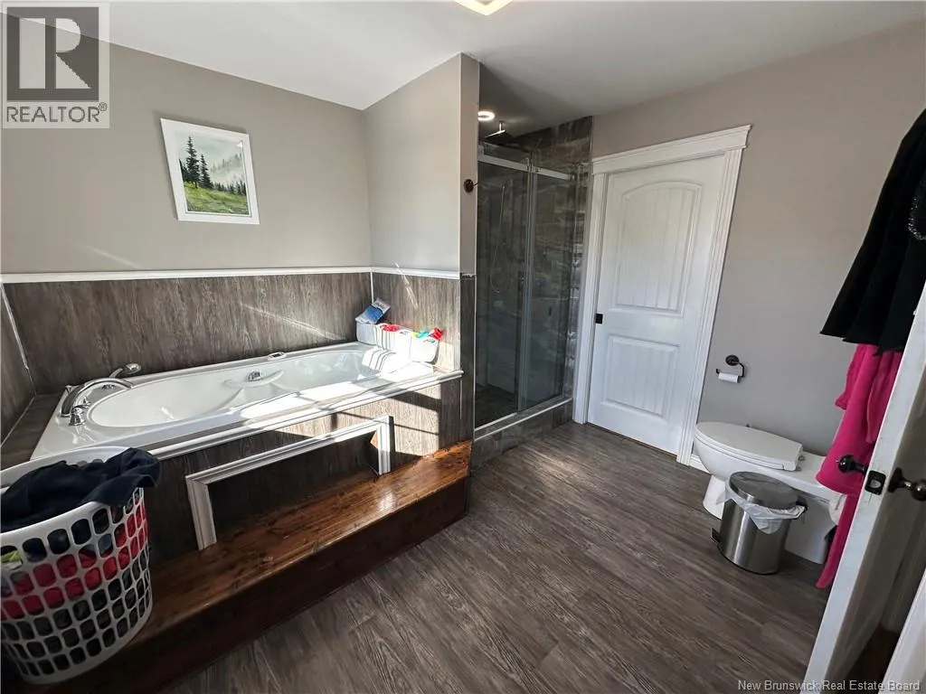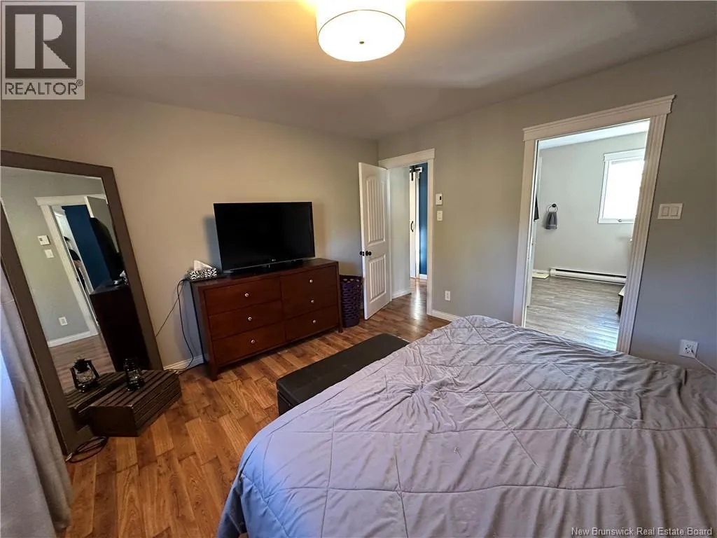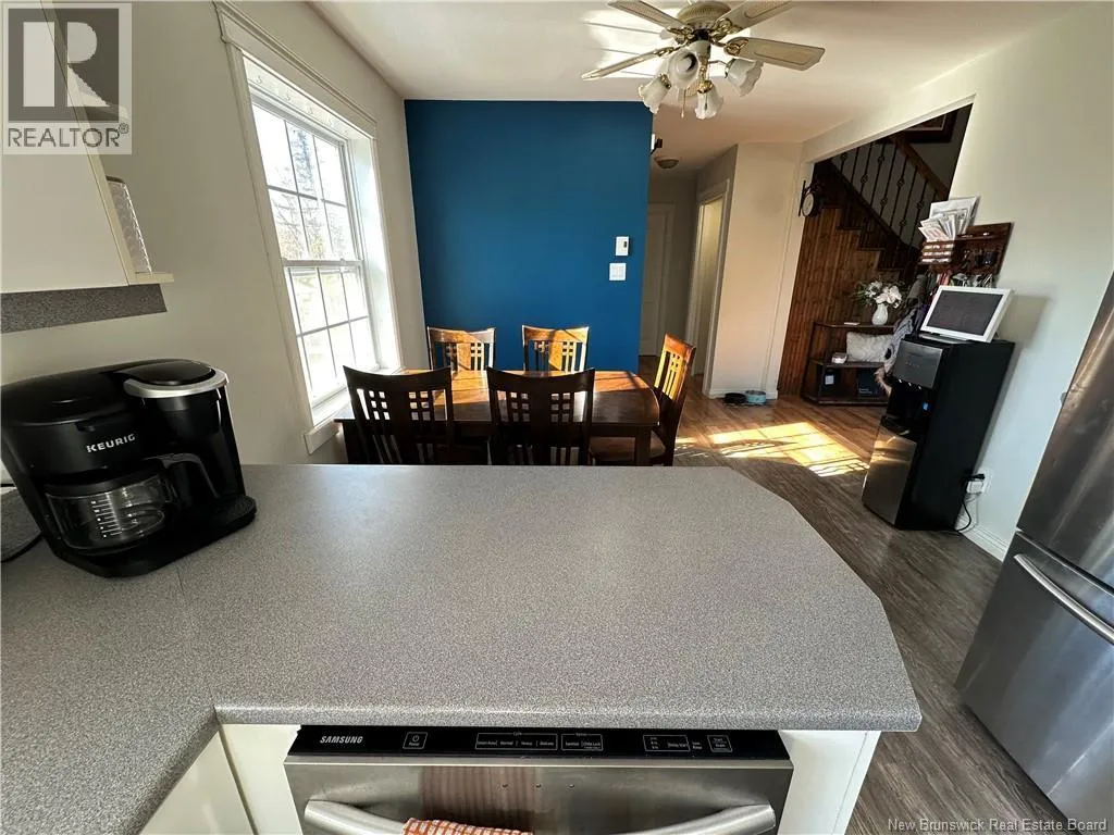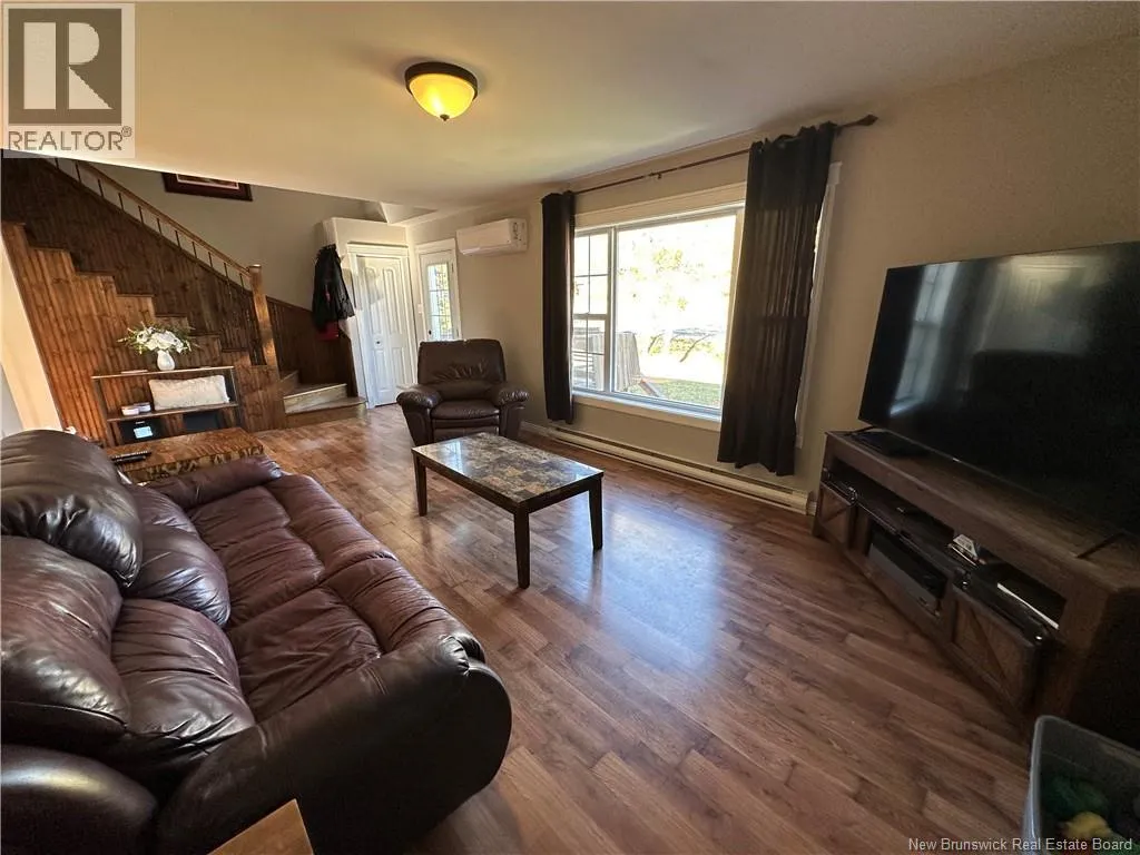Route 11, take exit in Beresford, head towards Robertville Country living at its best! This charming 1.5-storey home sits on a beautifully landscaped 1-acre lot and has seen numerous updates over the years. The main floor features a spacious kitchen and dining area, a bright living room with attractive floating floors, a laundry room and a primary bedroom complete with an ensuite bath and relaxing jacuzzi tub. A stunning solid wood staircase leads to the upper level, where youll find two additional bedrooms, a 3-pc bath, and a cozy sitting or reading nook. The basement with a separate entrance is drywalled and ready for your finishing touches. It offers an open-concept den with a wood stove (with approximately one years worth of wood included), a room currently used as an office (could be a 4th bedroom), a 2-pc bath, and a storage area. Upgrades include PVC windows (2014), changed siding from beige to blue, roof shingles on the home (2013) and garage (2016), and a freshly stained deck and patio (5 years old). The detached garage is fully finished, insulated, heated, and wired in. Other highlights include a 16x20 storage shed, two heat pumps (the upper one operates as fan only), and a Blue Rock driveway completed in 2025. A wonderful blend of comfort, character, and country charm call today to schedule your private showing! (id:27476)