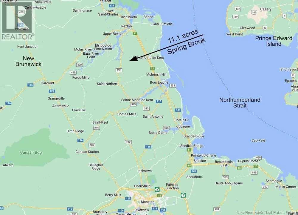 From Hwy 11 take Exit and turn left onto Route 134, left onto St. Maurice. Please use help with mapping from Realtor.ca Escape to nature with this beautiful 11.14-acre parcel located on Spring Brook Road in the peaceful community of South Branch, New Brunswick. Offering approximately 490 feet of road frontage and extending back roughly 997 feet, this rectangular lot provides excellent usability and flexibility for your future plans. Accessed by a seasonal private road, the property is partially treed with softwood bush, creating a private and serene setting surrounded by nature. Whether you're dreaming of a recreational retreat, hunting camp, or seasonal getaway, this property offers incredible potential. The land has already been approved for two 14x40 buildings and an access road, saving you time and adding value for your future development. Even more appealing, the property sits directly across from 200 acres of Community Forest International land, with an additional 1,200 acres of New Brunswick Natural Resources Forest directly behind providing unmatched privacy and endless outdoor opportunities right at your doorstep. Located just 25 minutes from Bouctouche, youll enjoy convenient access to all major amenities while still embracing the tranquility of rural living. If youve been searching for the perfect spot to build a camp and enjoy the outdoors, this could be the opportunity youve been waiting for. PID #25487372 (id:27476)